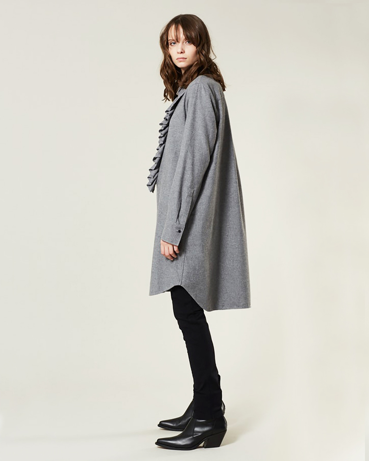 SOFT FLANNEL SHIRT DRESS WITH RUFFLES BY LIS LAREIDA, 100% COTTON, IN TARTAN, GREY OR BLUE: 395€ / 385€