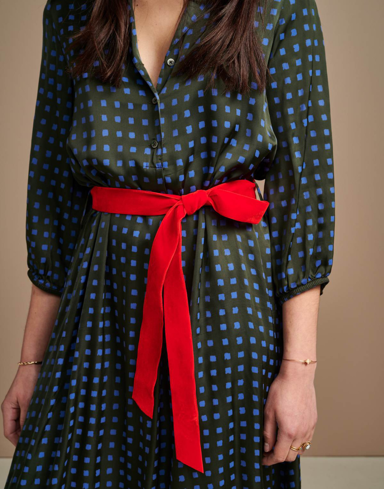 LOVELY BLACK AND BLUE DRESS IN MIDI LENGTH BY BELLEROSE: 199€