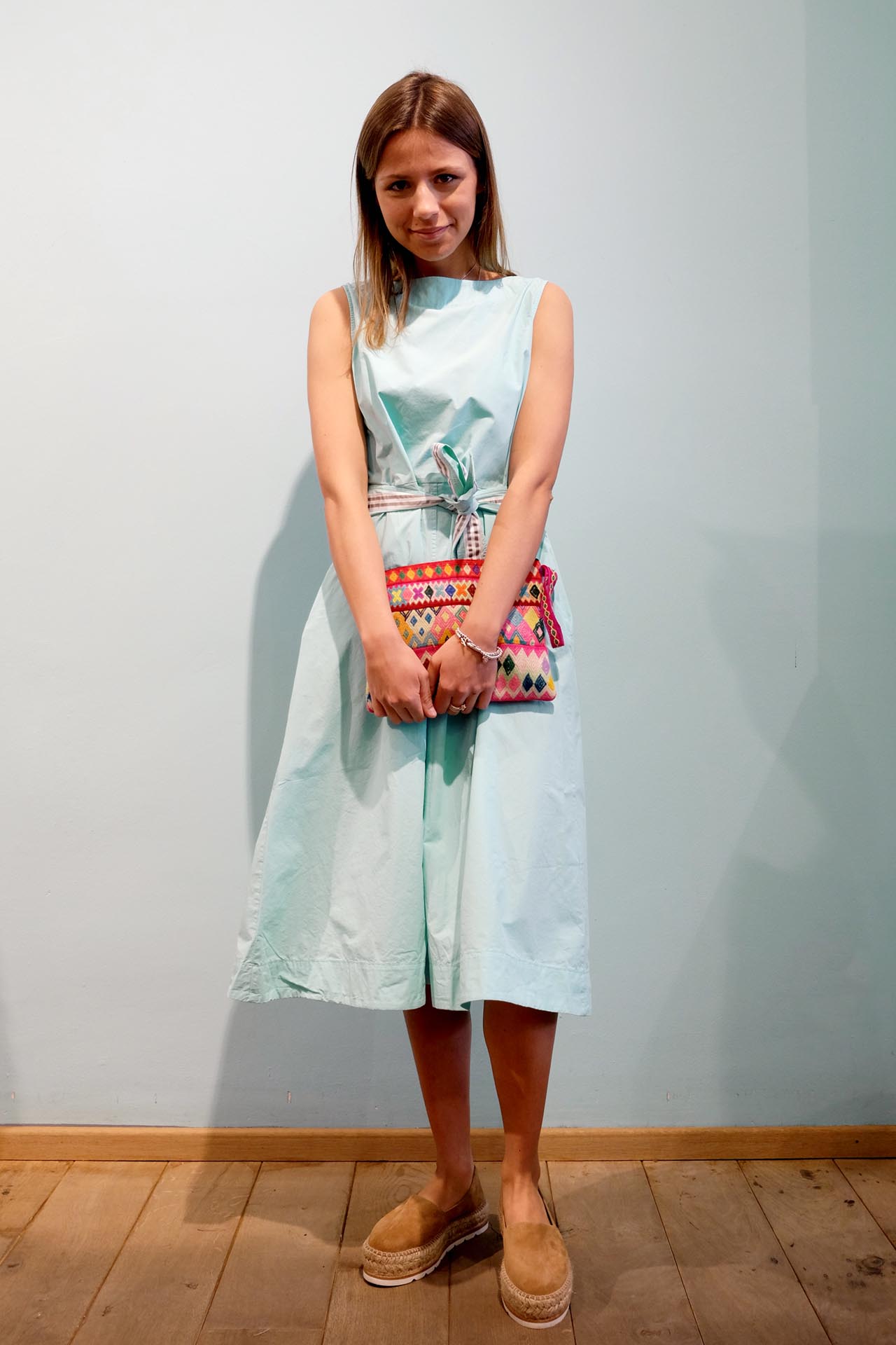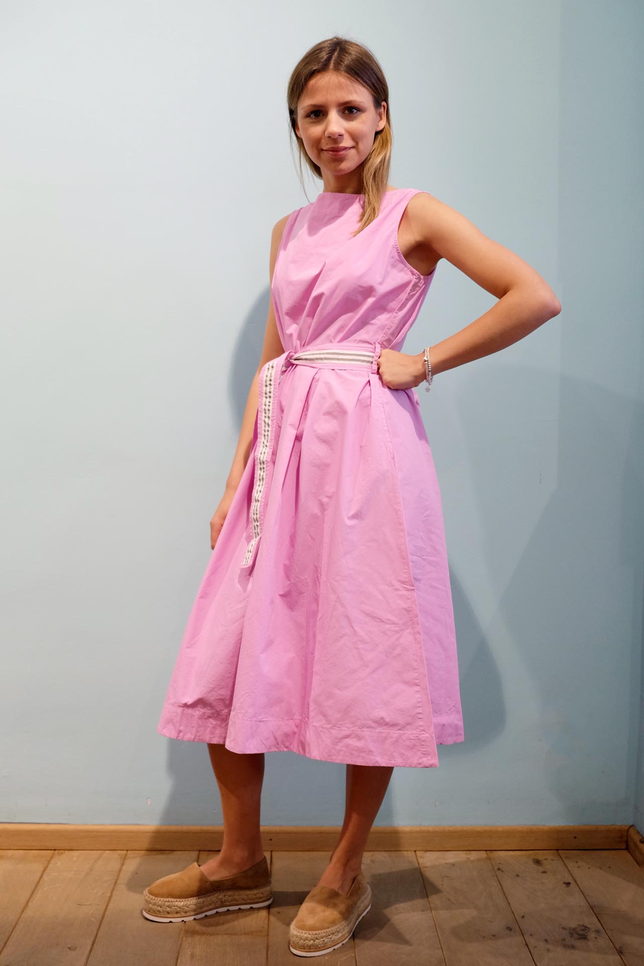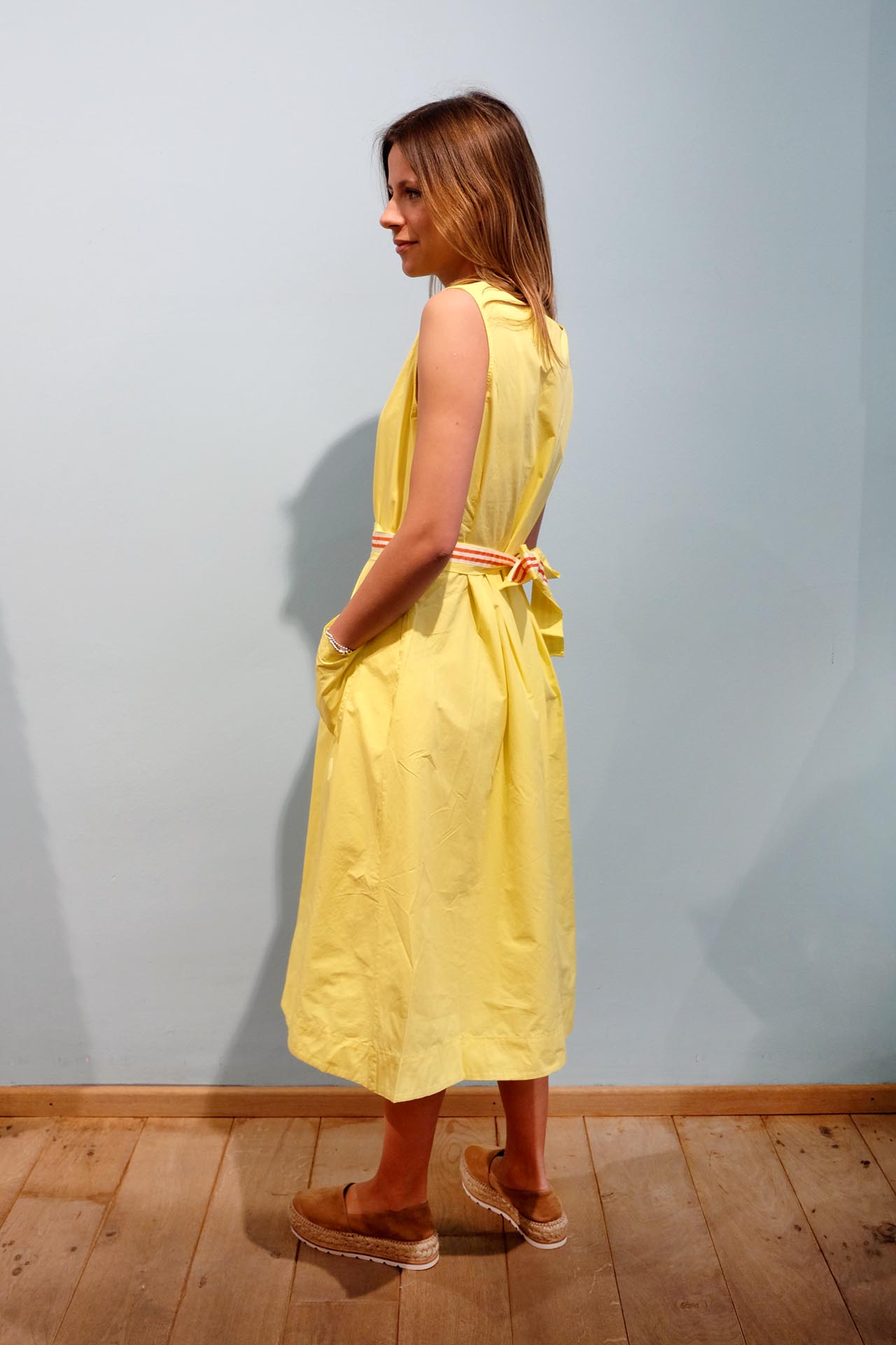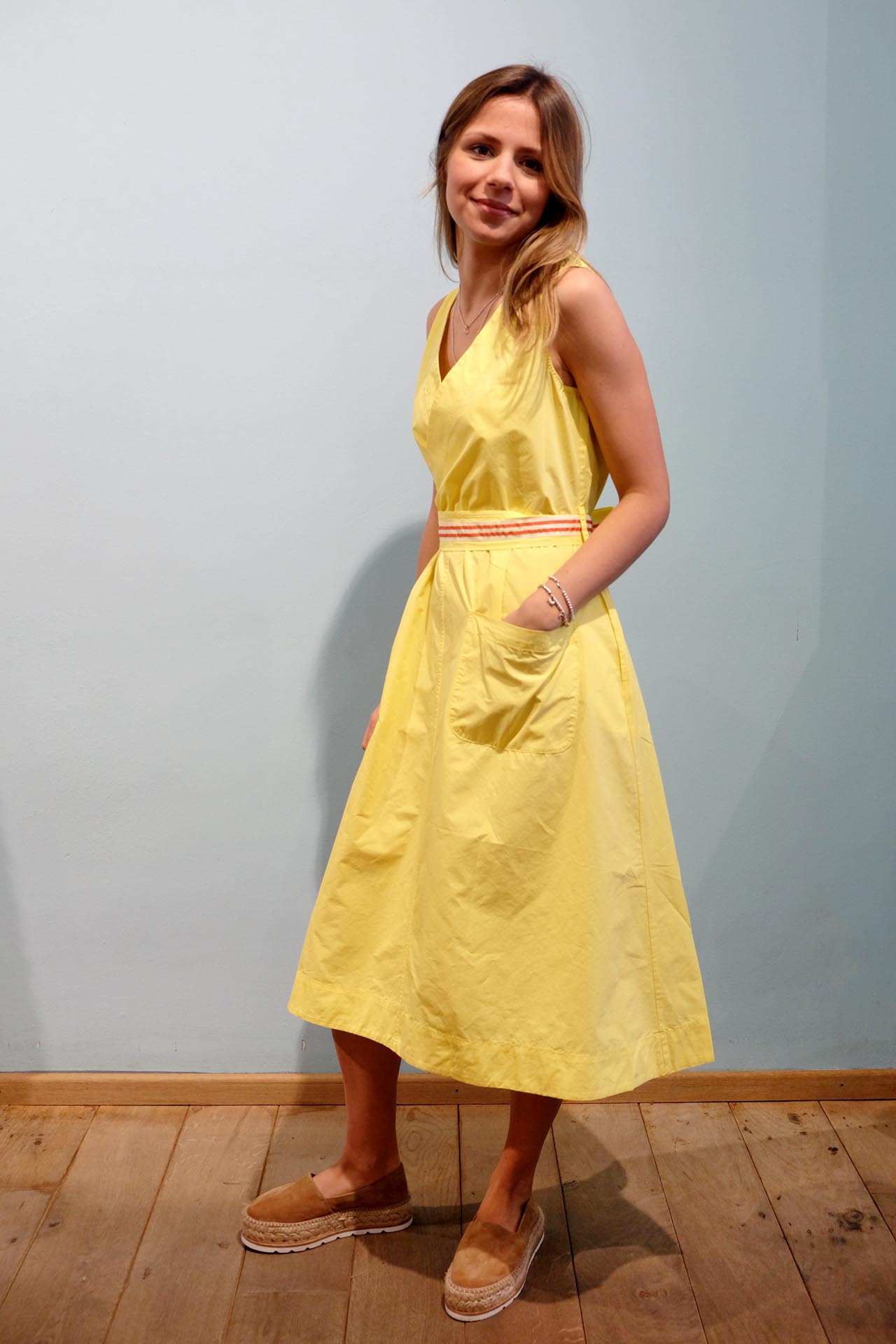 KLEID "COLETTE" IN DEN FARBEN: AQUA, GIALLO UND ROSA. DAS SOMMERKLEID HAT SEITLICHE EINGRIFFSTASCHEN UND IST BEIDSEITIG TRAGBAR.