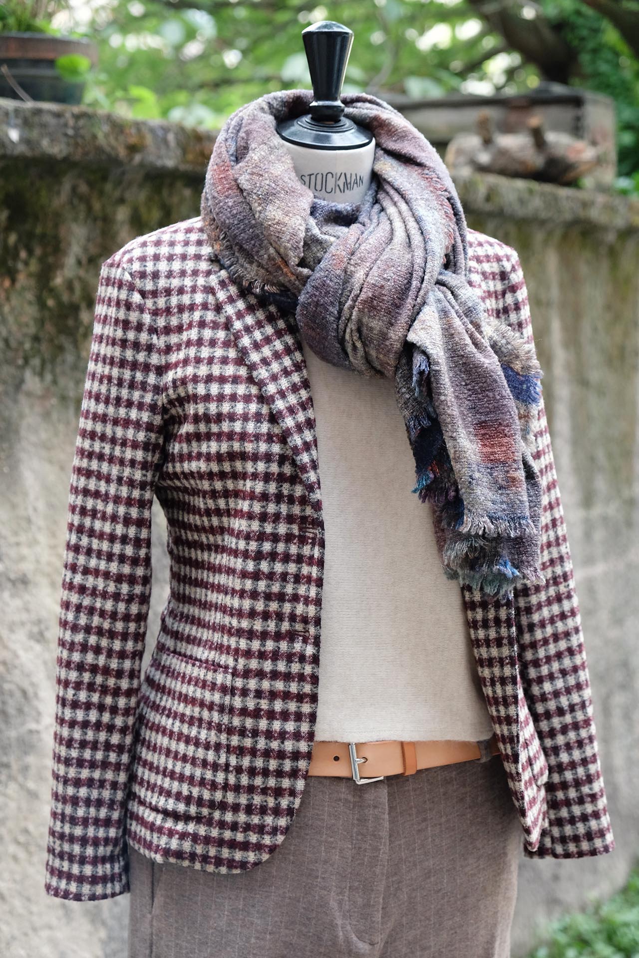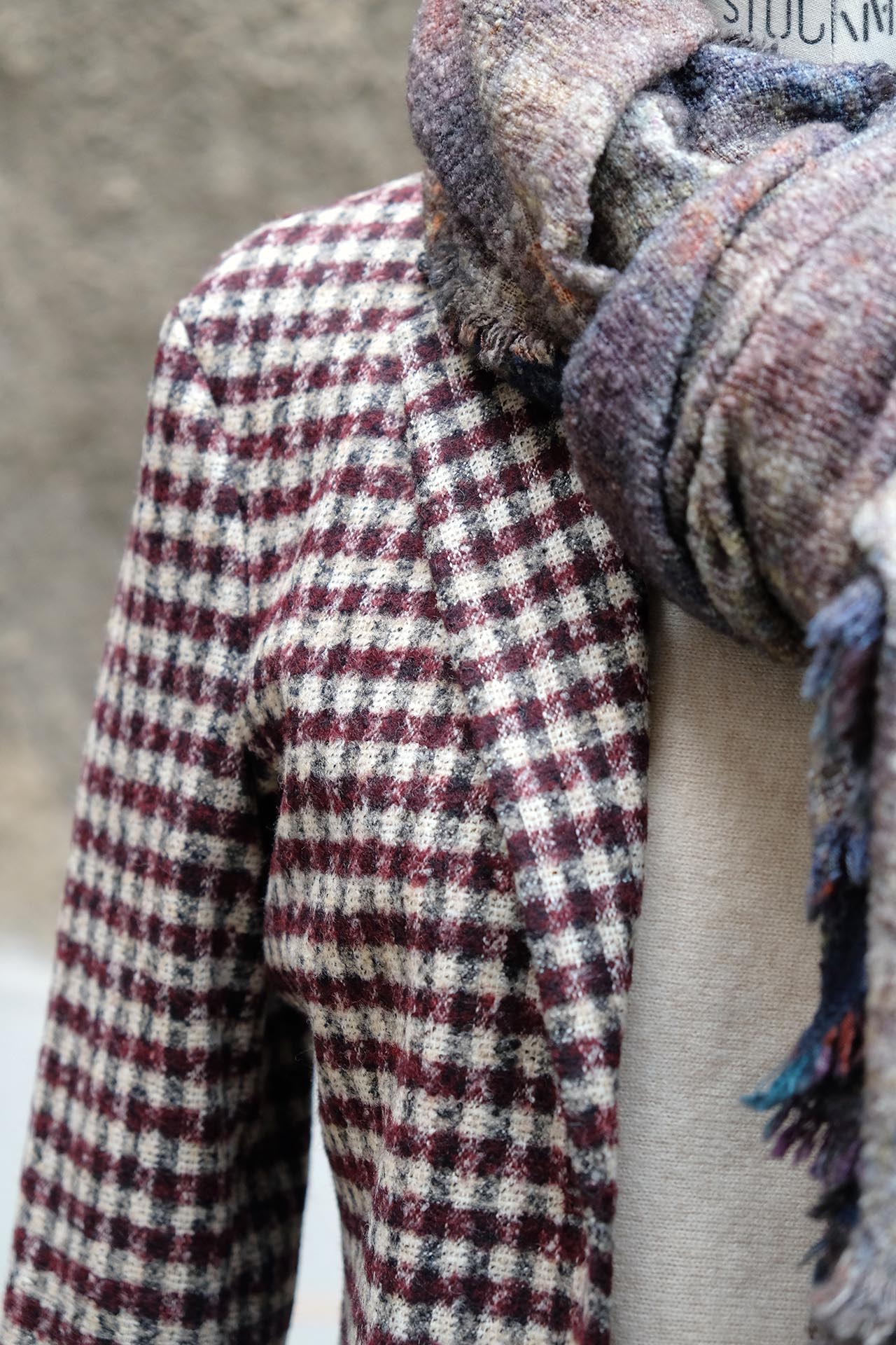 HIER BORDEAUX- BEIGE KARIERT IN IN EINEM ALPAKA- WOLL. MIX.