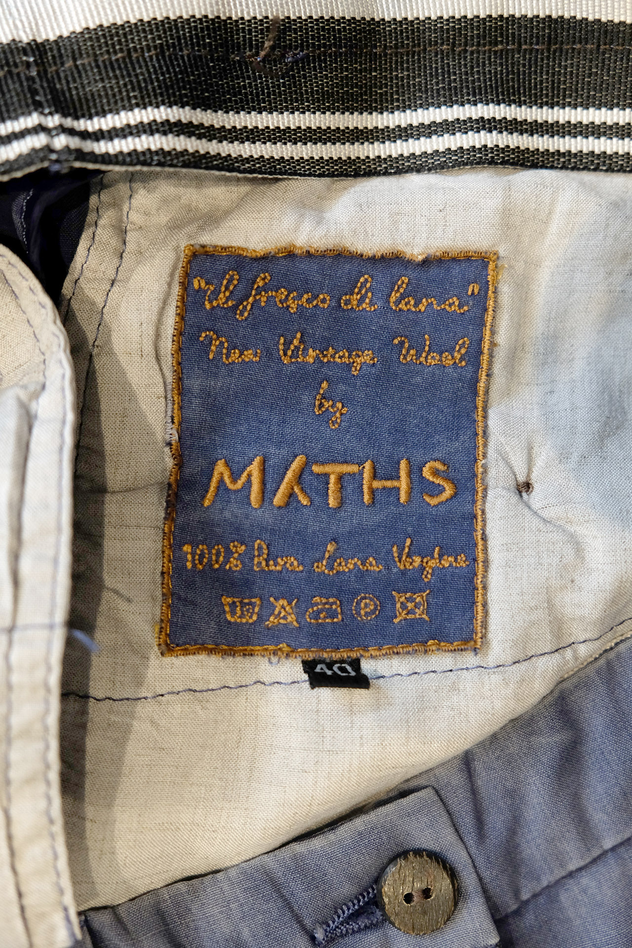 DAS HIER IST DIE DELUXE-VARIANTE UNSERER FRÜHLINGS-CHINO "FRESCO DE LANA" VON MYTHS. NEW VINTAGE WOOL!