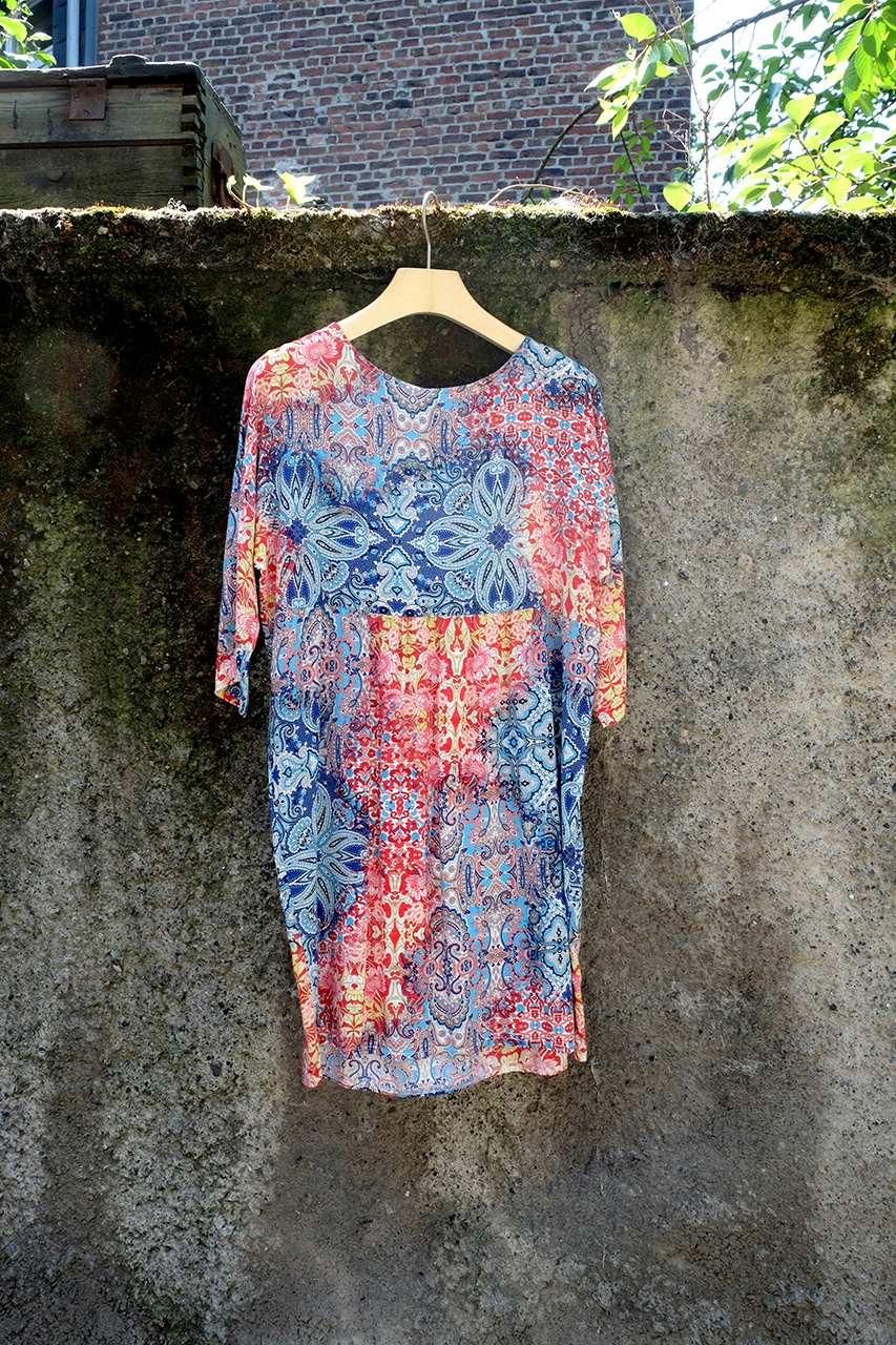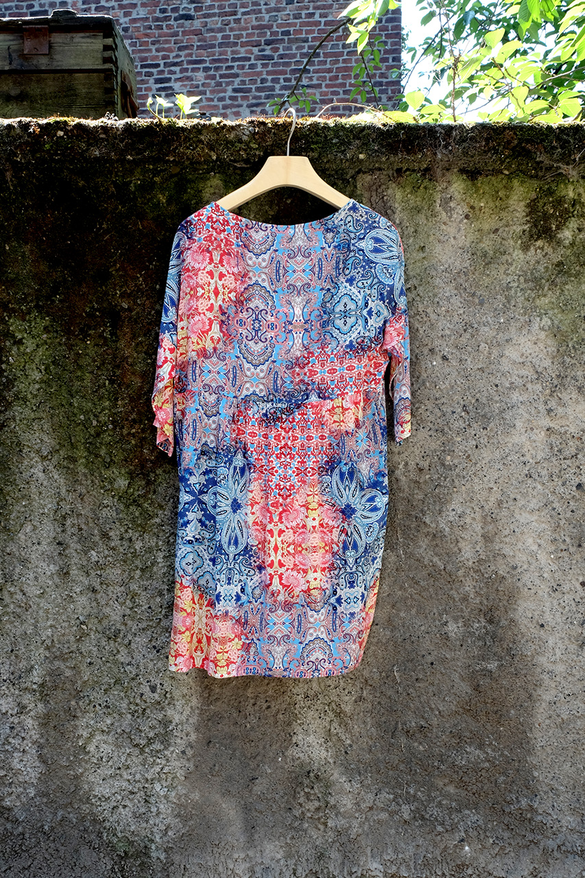 Luftiges Kleid aus Viskose mit buntem Farbenmuster.