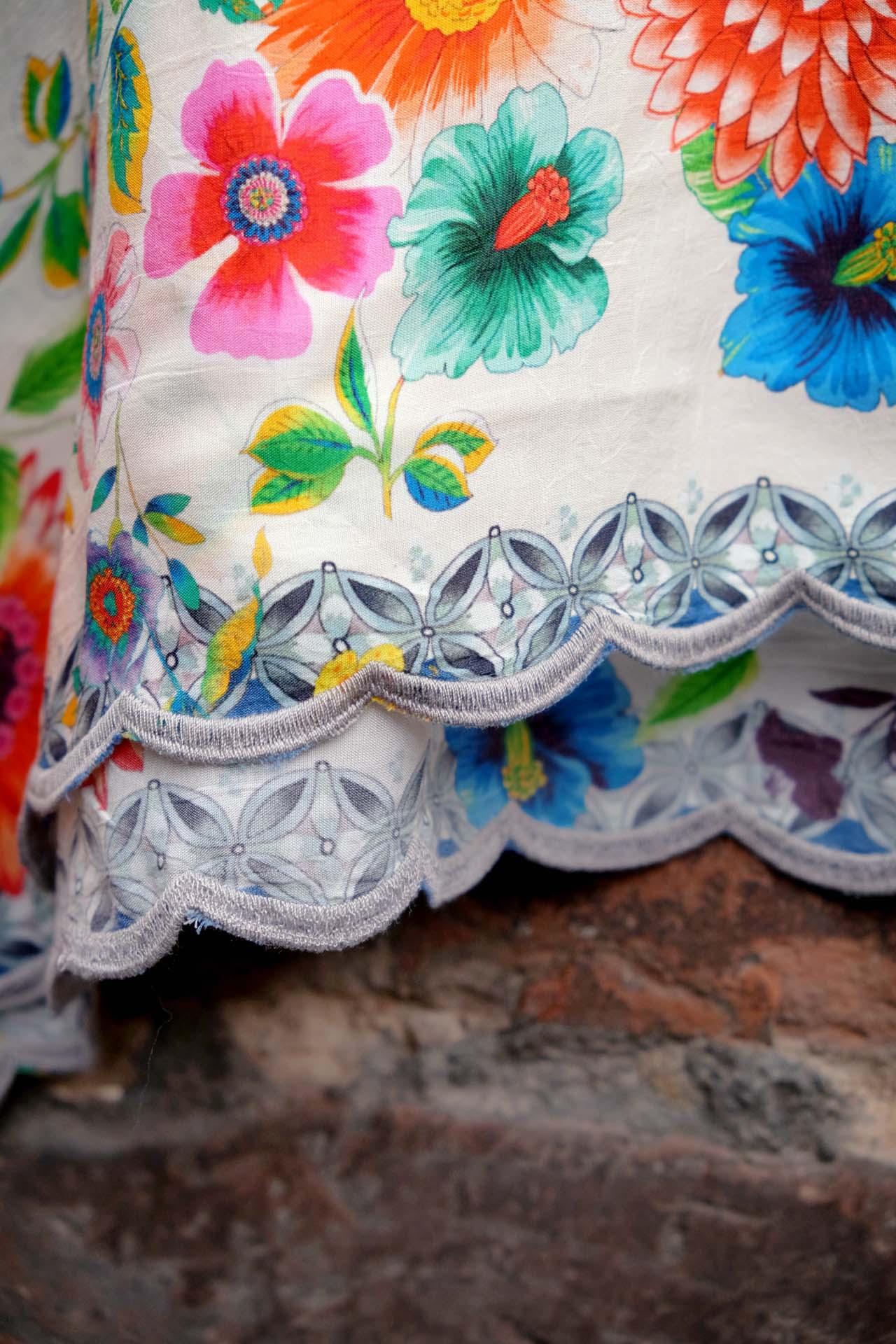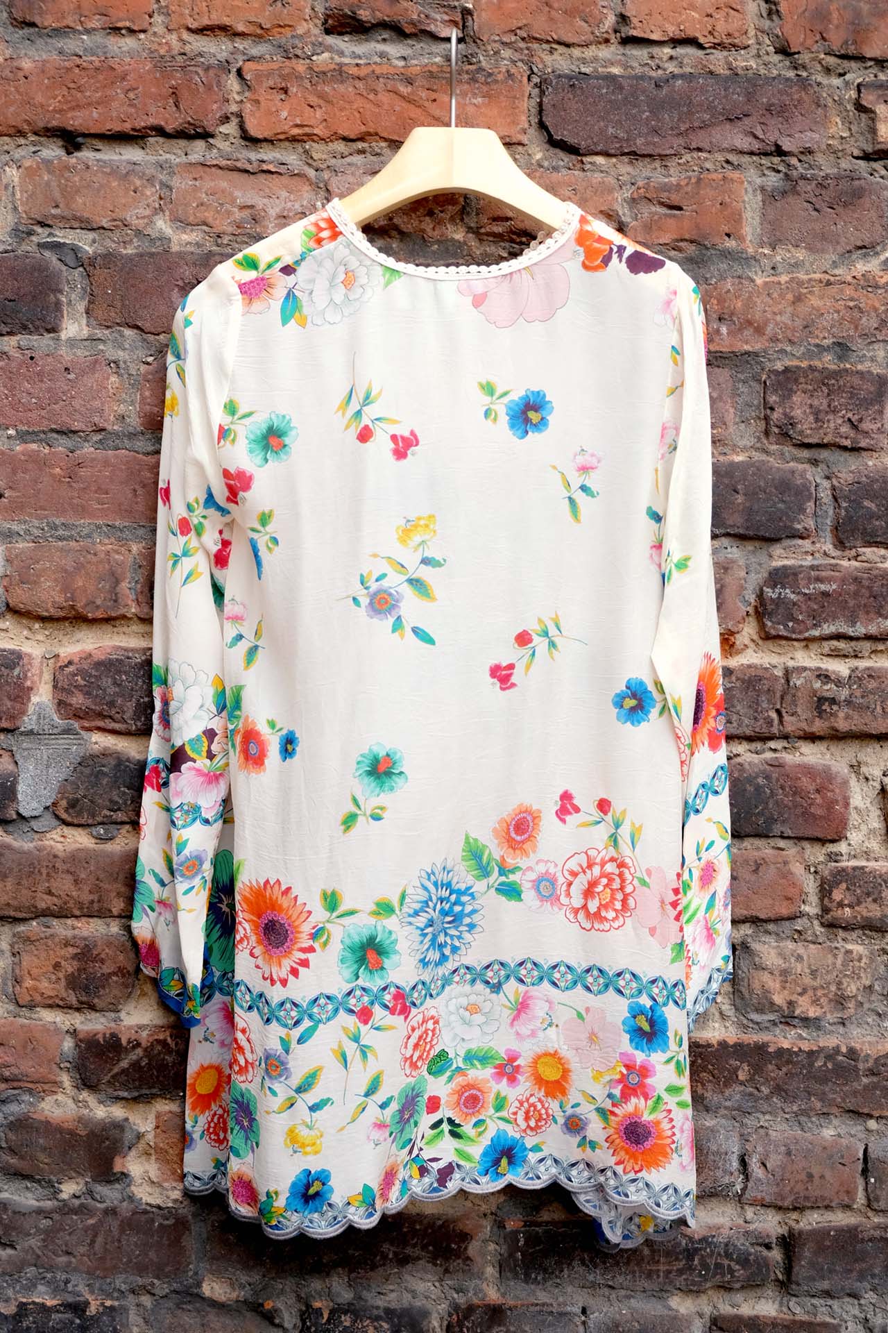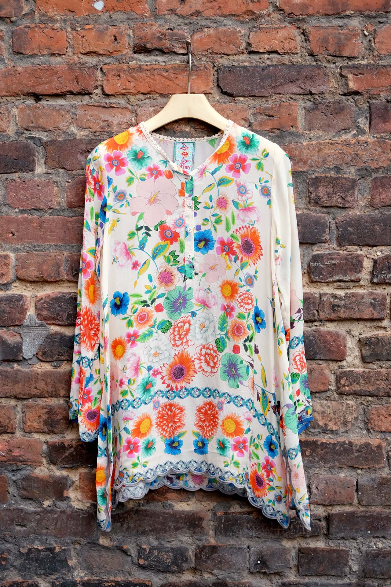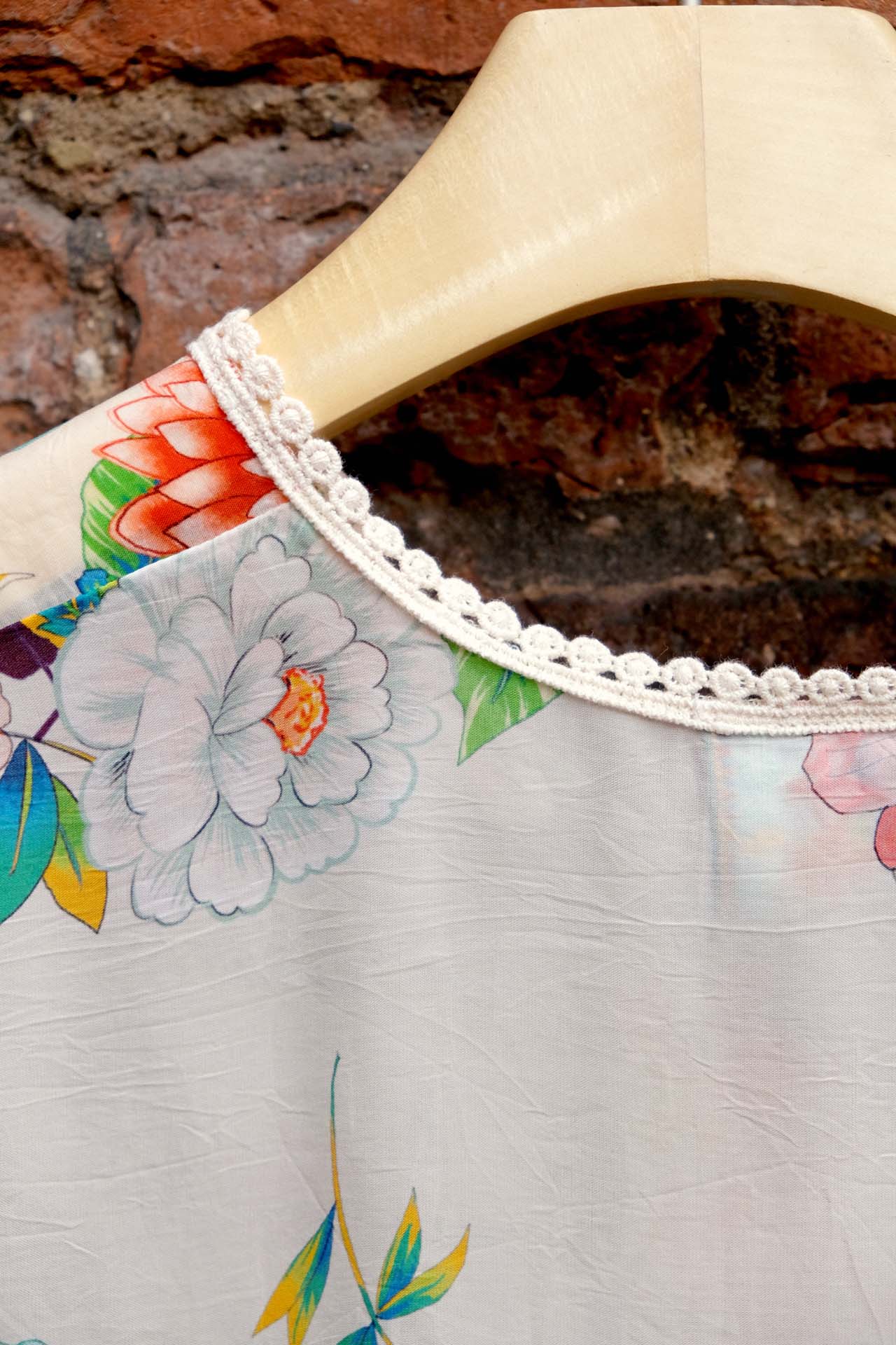HANDKERCHIEF BLOUSE "MALA" MIT FANTASIEVOLLEM BLUMENPRINT UND SCHMUCKBODÜRE.