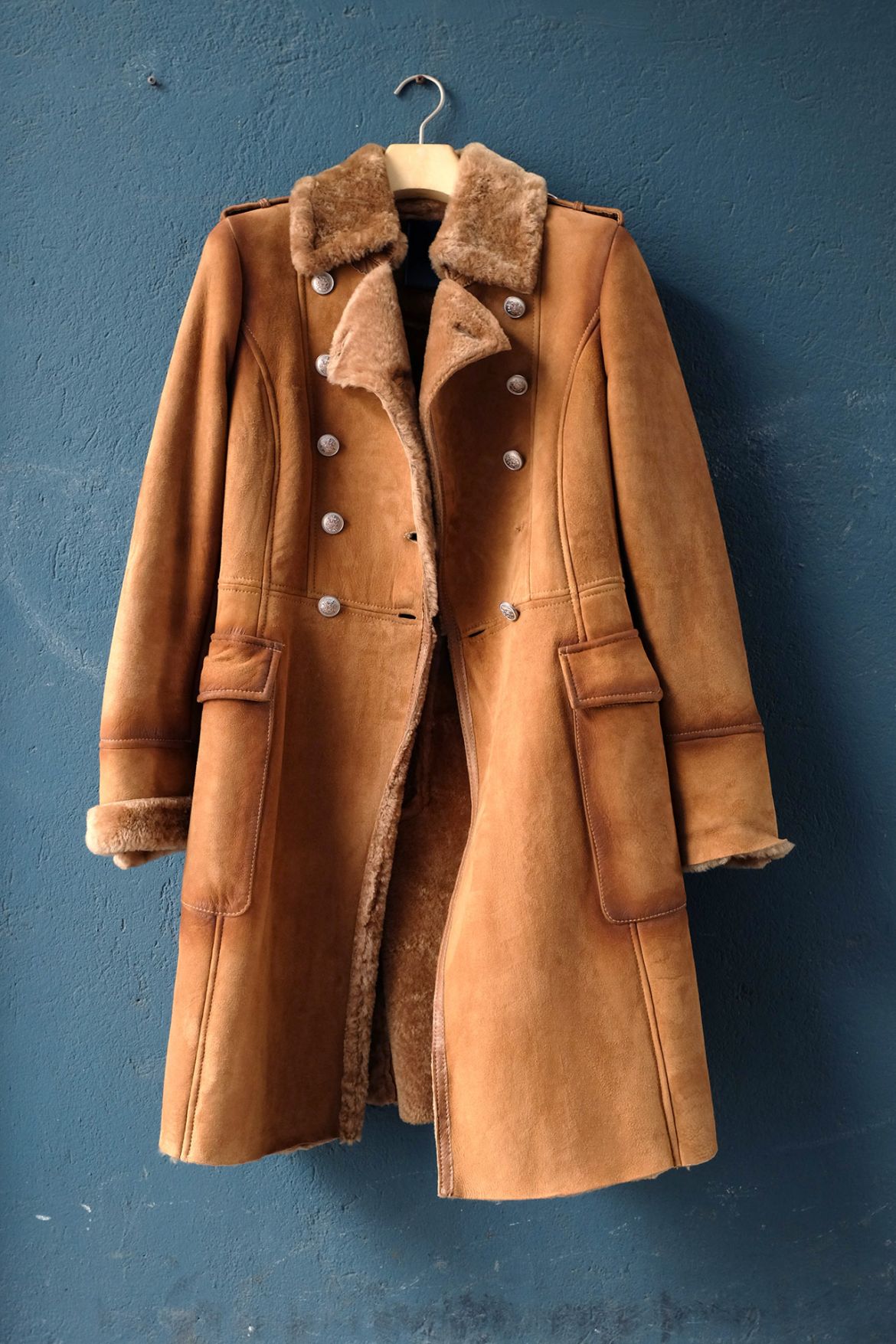 LAMMFELLMANTEL IM MILITÄRSTIL VON UNFLEUR. ER IST SUPER WEICH UND WARM. UNSER LETZTER MANTEL IST GRÖSSE 36 UND VON 1900€ AUF 900€ REDUZIERT!!!