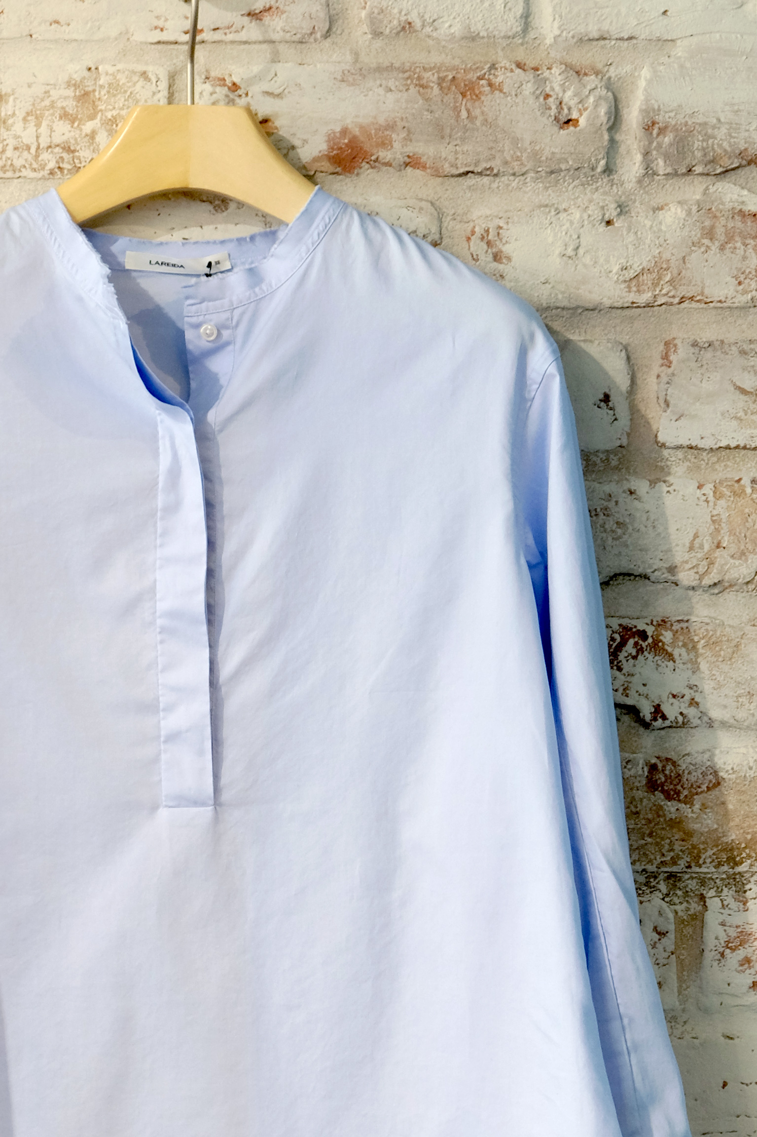 BLUSE "NURA" IN HELLBLAU MIT GEFRANSTEM STEHKRAGEN: 249€
