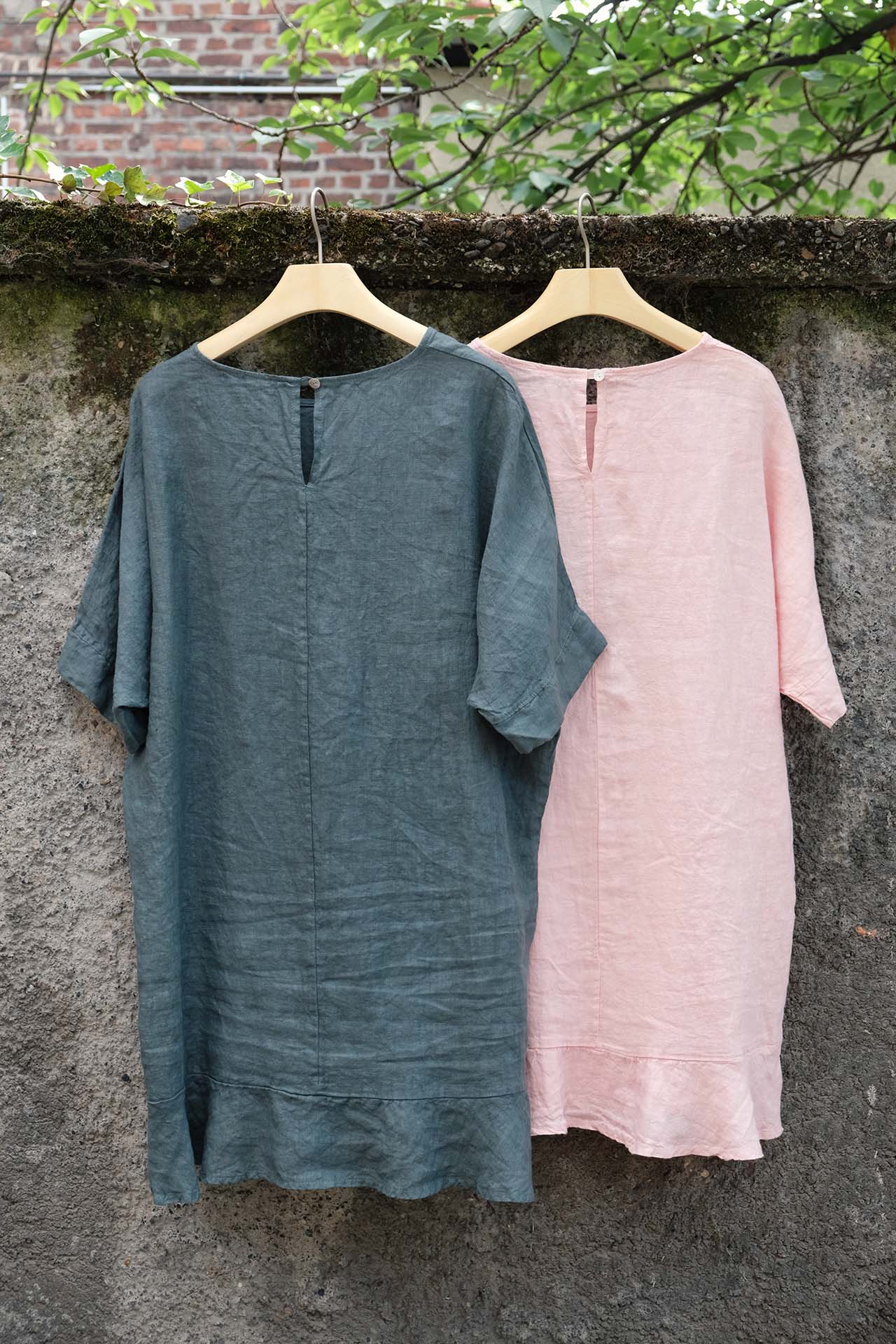 LUFTIGES, SOMMERLICHES LEINENKLEID IN DEN FARBEN KHAKI UND PUDER: 39€