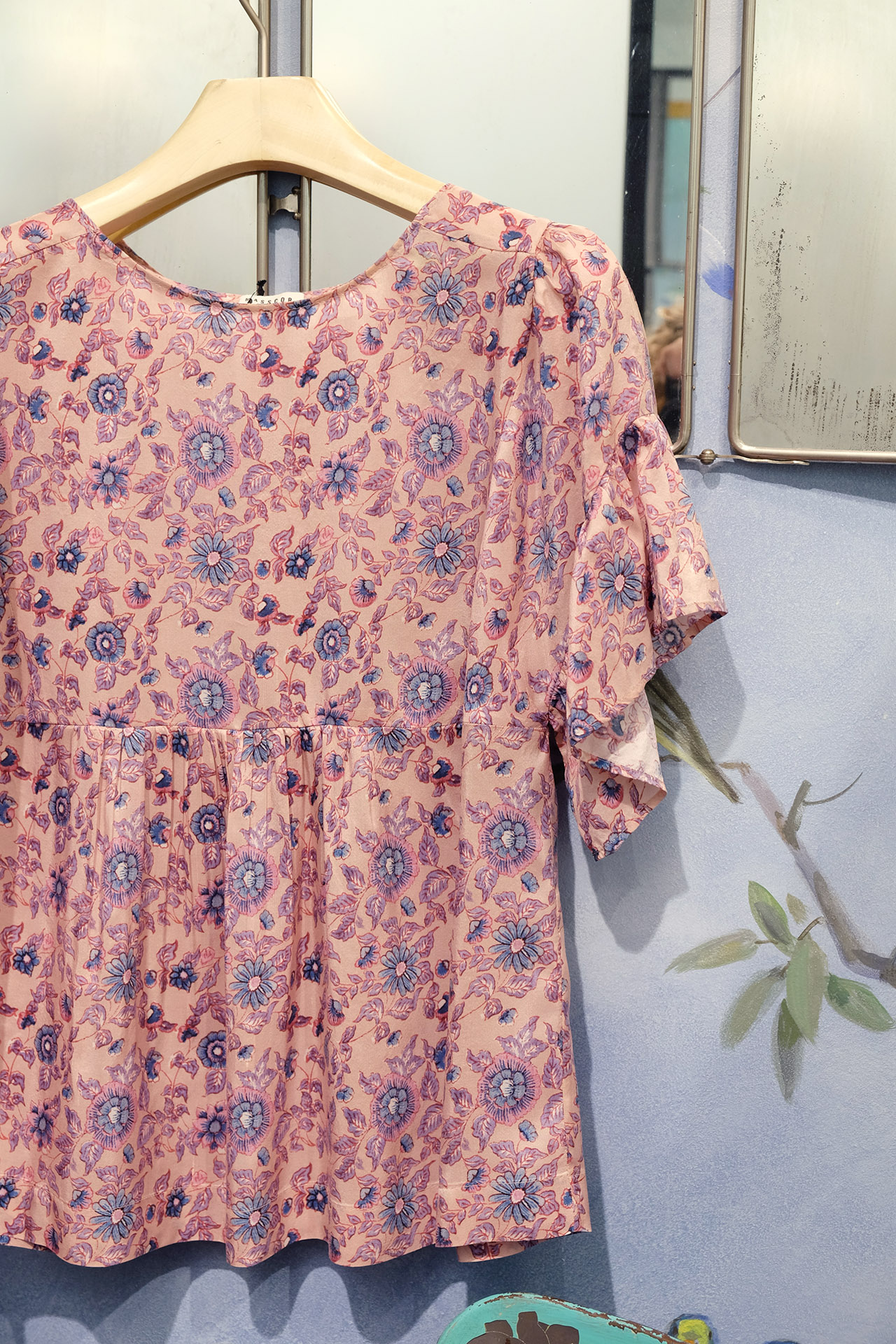 SEIDENBLUSE VON MASCOB MIT WUNDERSCHÖNEM BLÜTENPRINT AUS 100% SEIDE.