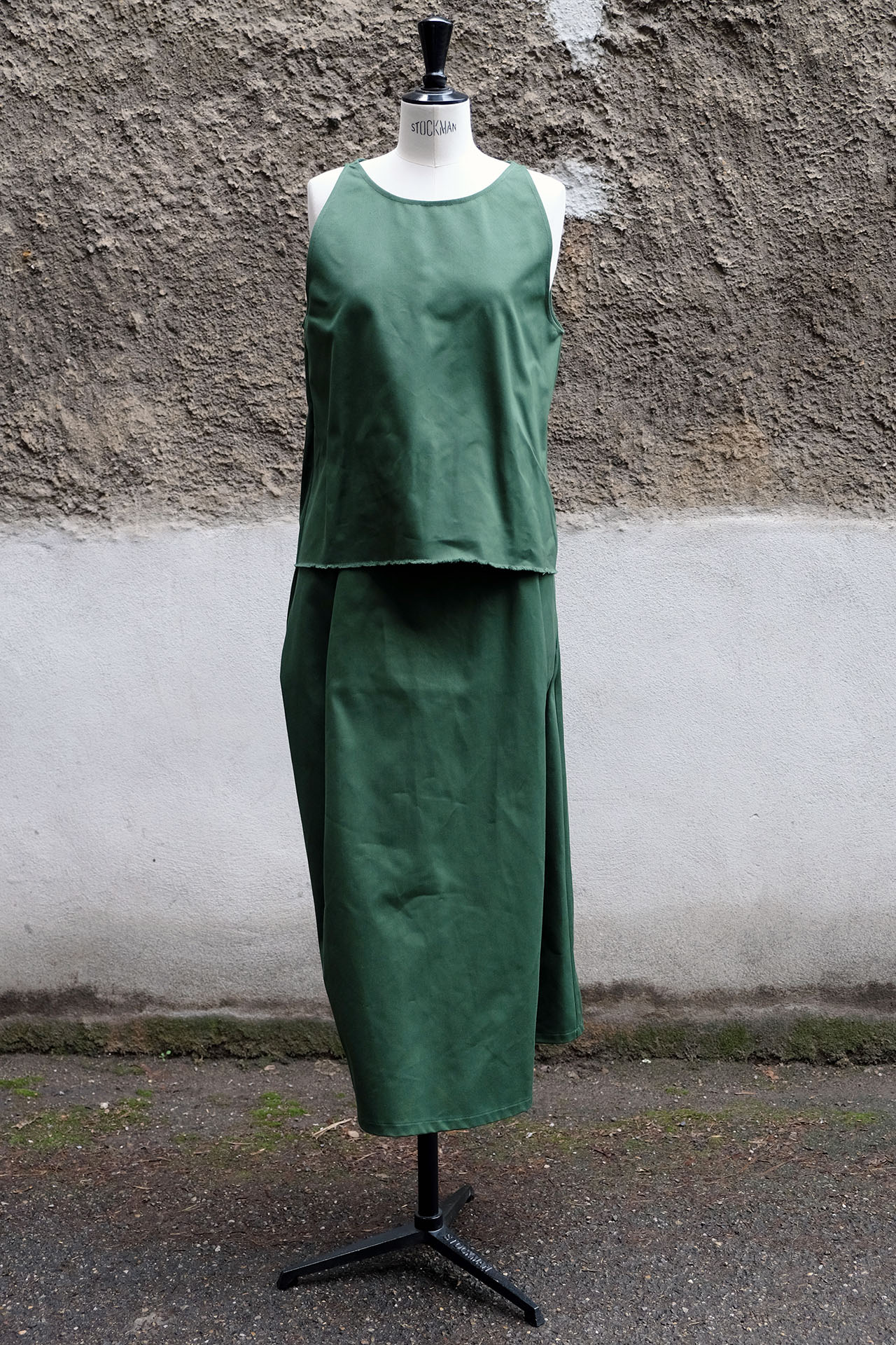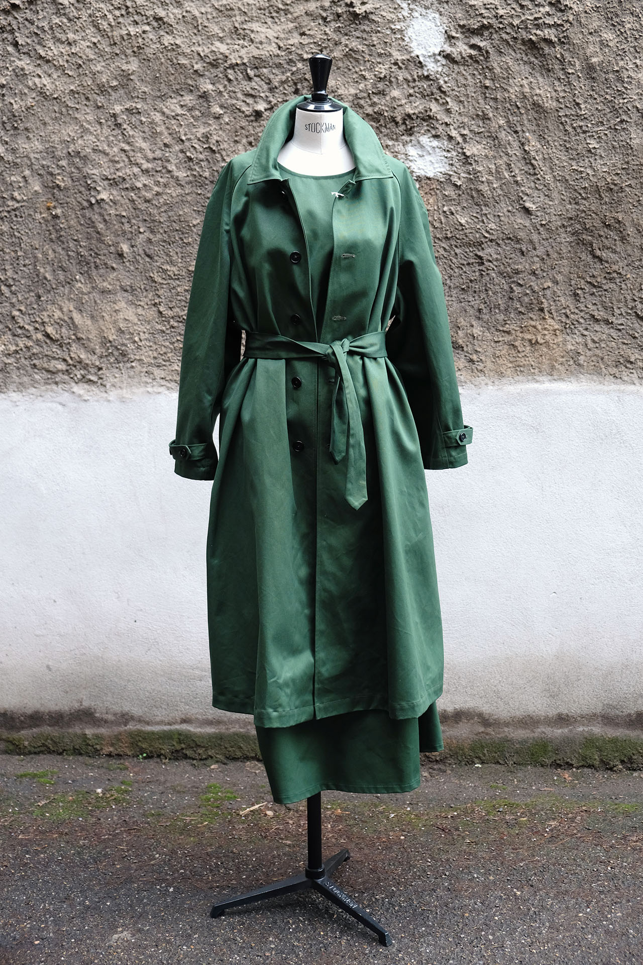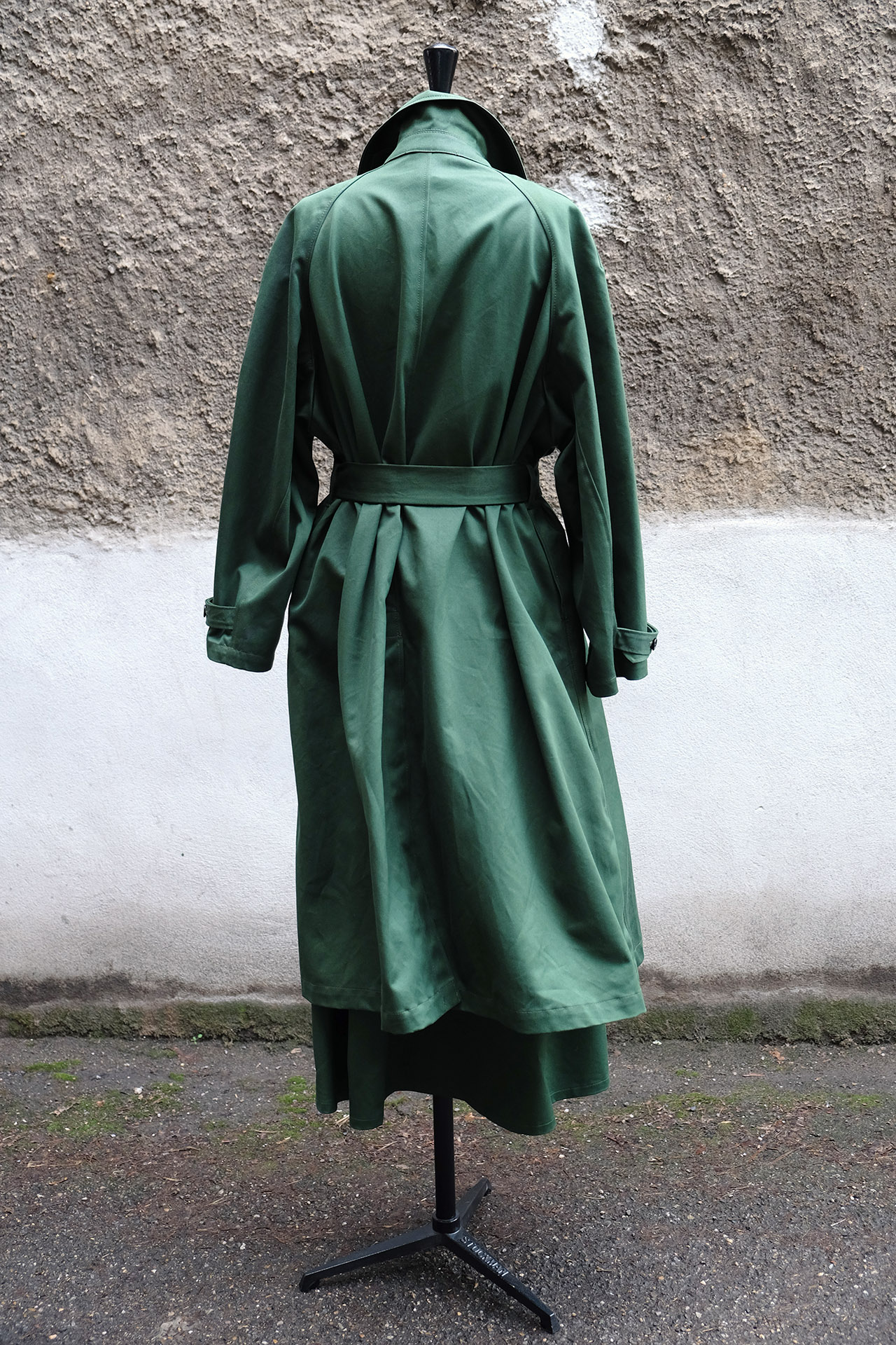 MEGA COOLER, SMARAGDGRÜNER TRENCHCOAT VON BARENA AUS VENEDIG. DAZU GIBT ES DEN PASSENDEN ROCK UND DAS PASSENDE ÄRMELLOSE TOP! ALLES IST AUS 100% BAUMWOLLE.