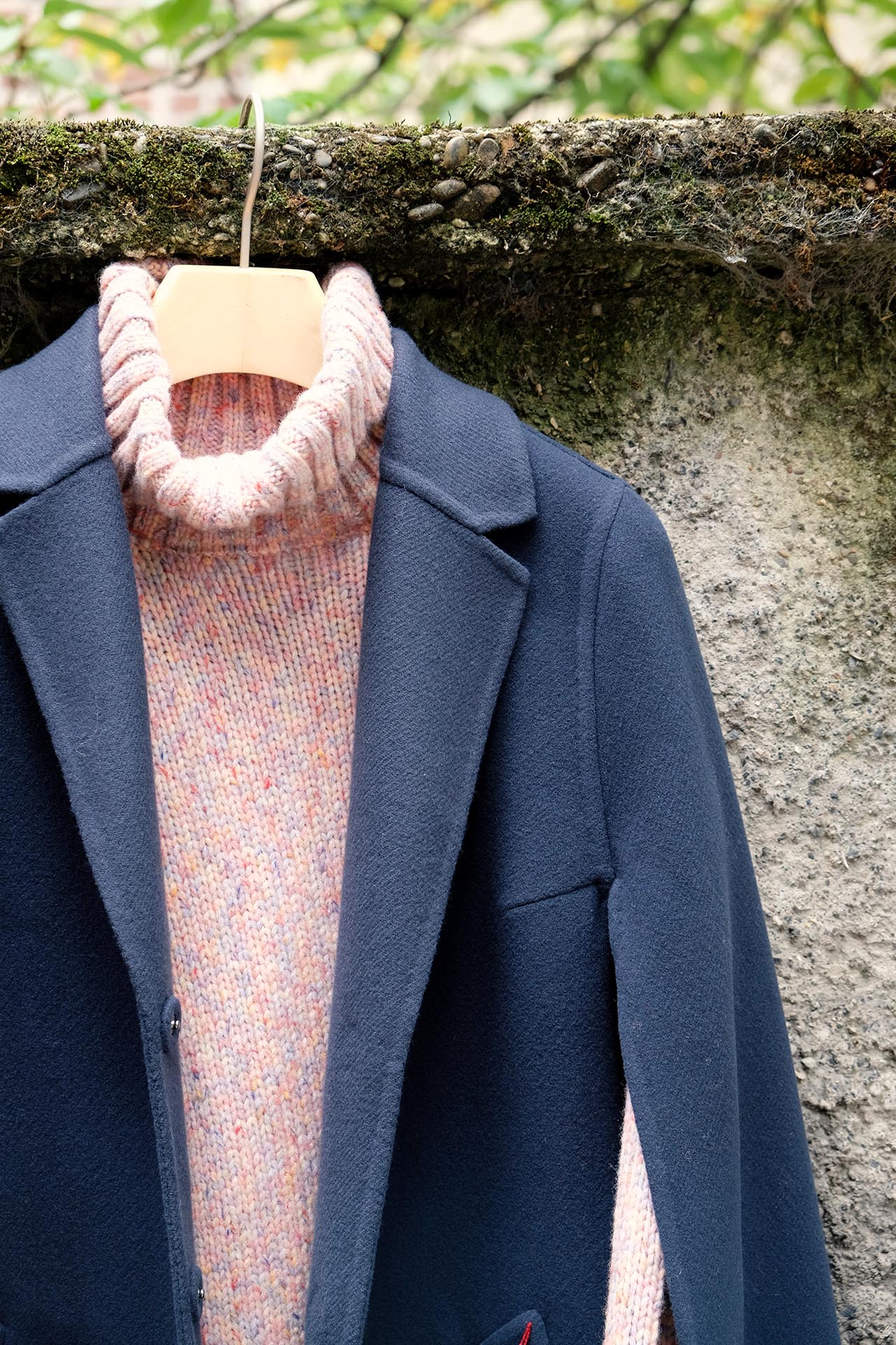 GANZ NEU BEI UNS VON LOST IN ME: WARMES DOUBLEFACE CAPE AUS WOLLE IN TAUBENBLAU.
