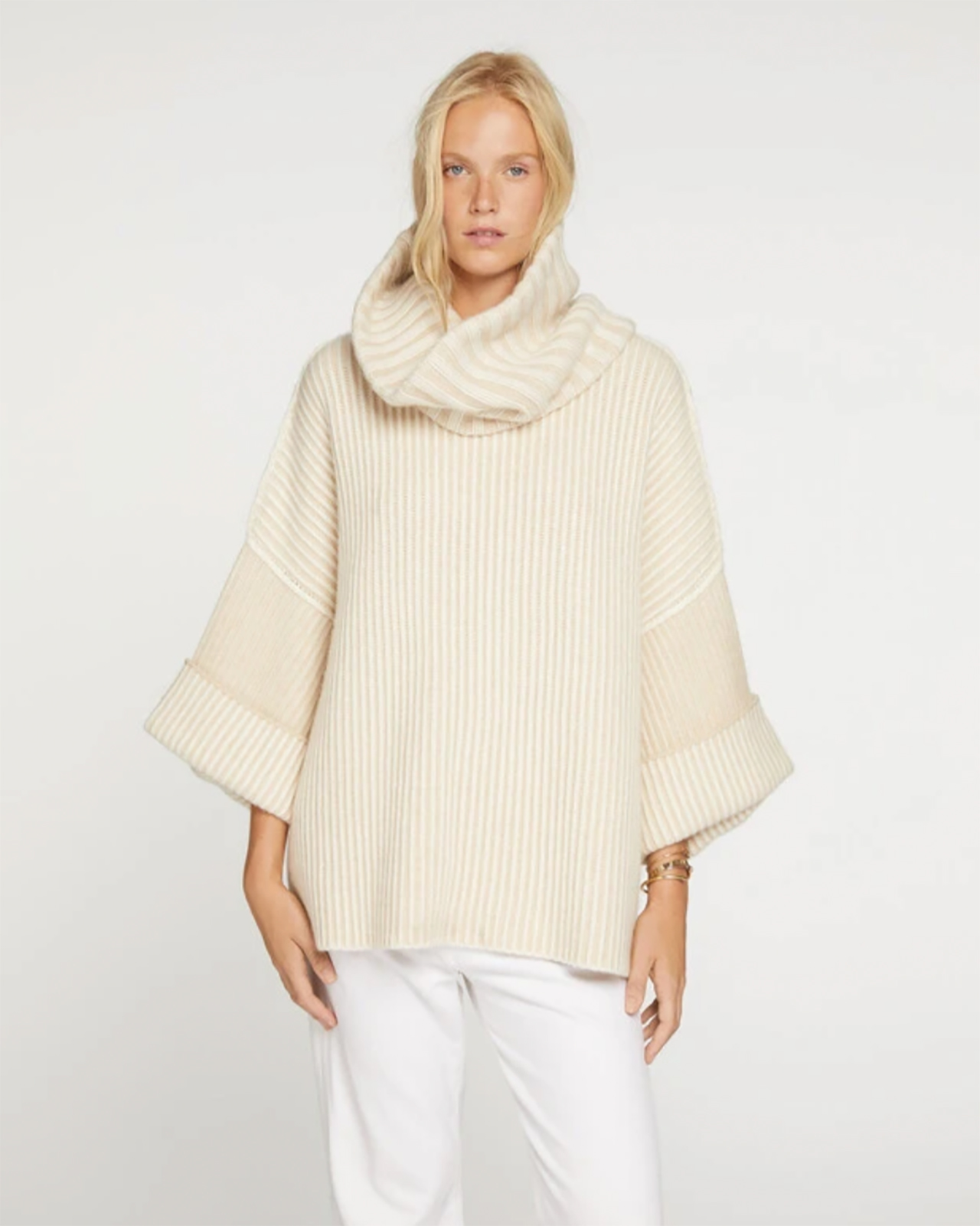 PONCHO WITH REMOVABLE COLLAR, 100% CASHMERE, 6-PLY ENGLISH RIB KNIT: 960€