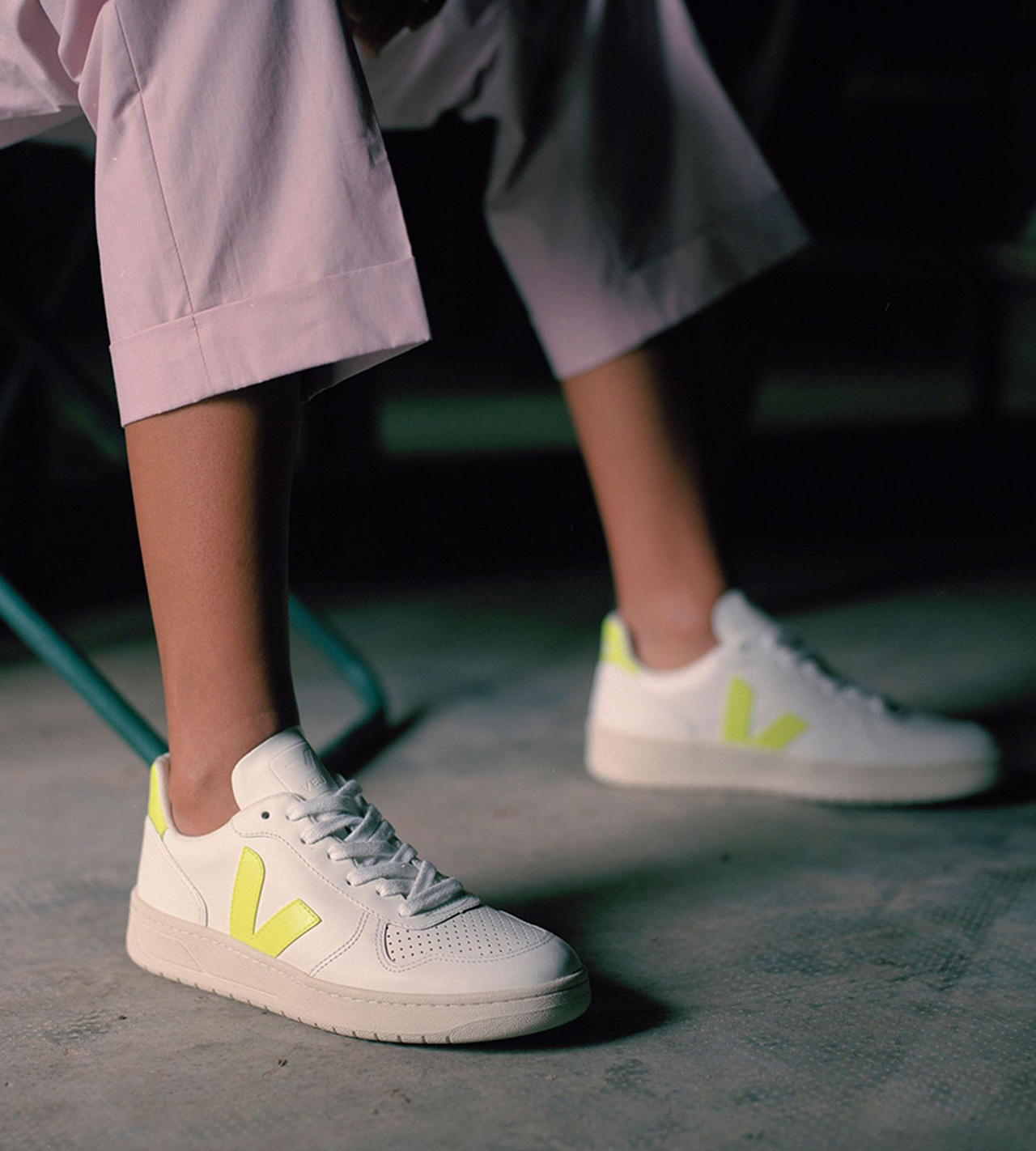 V10 LEATHER WHITE JAUNE FLUO VON VEJA: 125€
