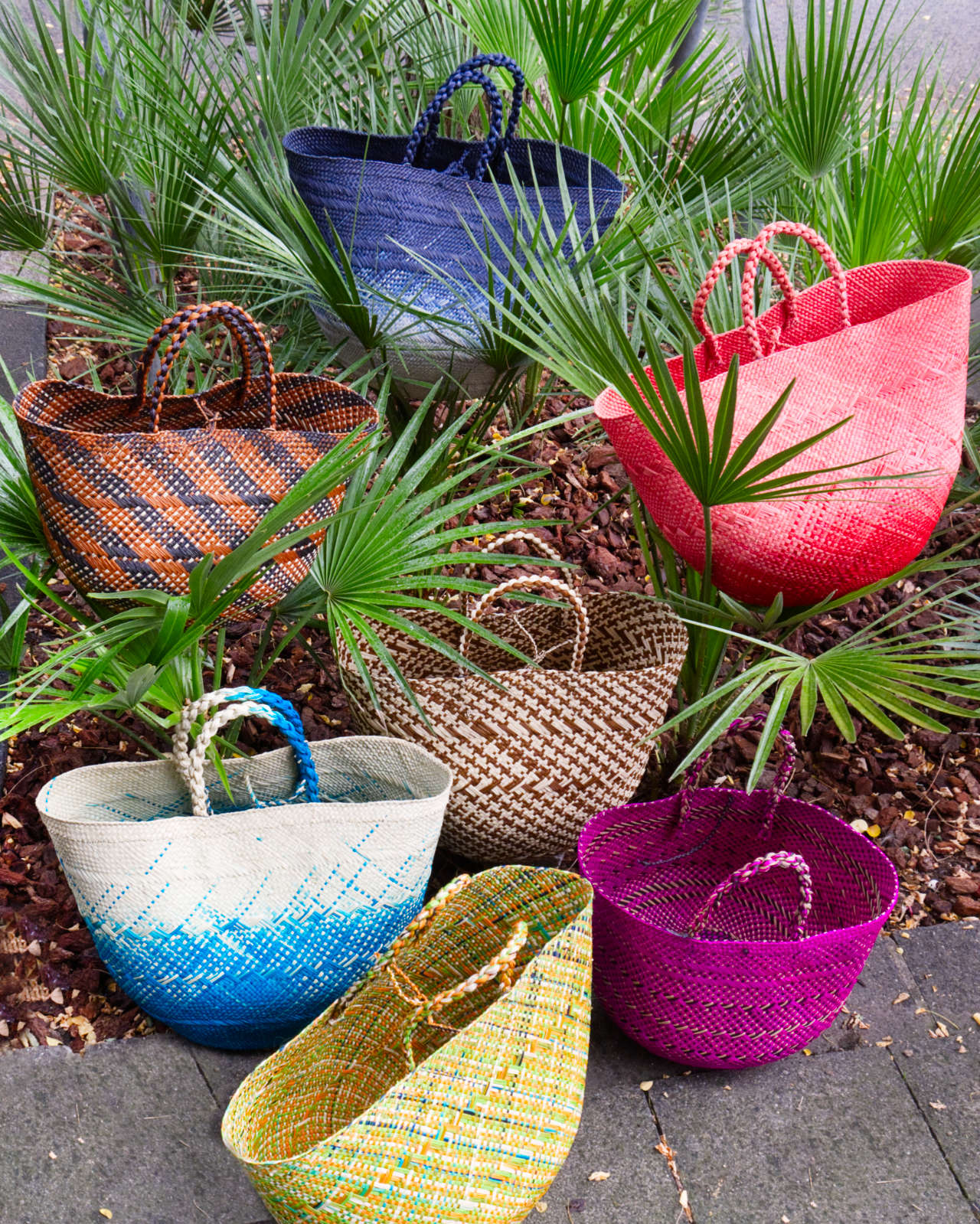 LIGHT STRAW BASKETS BY GUNANABANA, TRADITIONALLY HANDMADE IN COLUMBIA. AVAILABLE IN TWO SIZES: 98€ / 125€