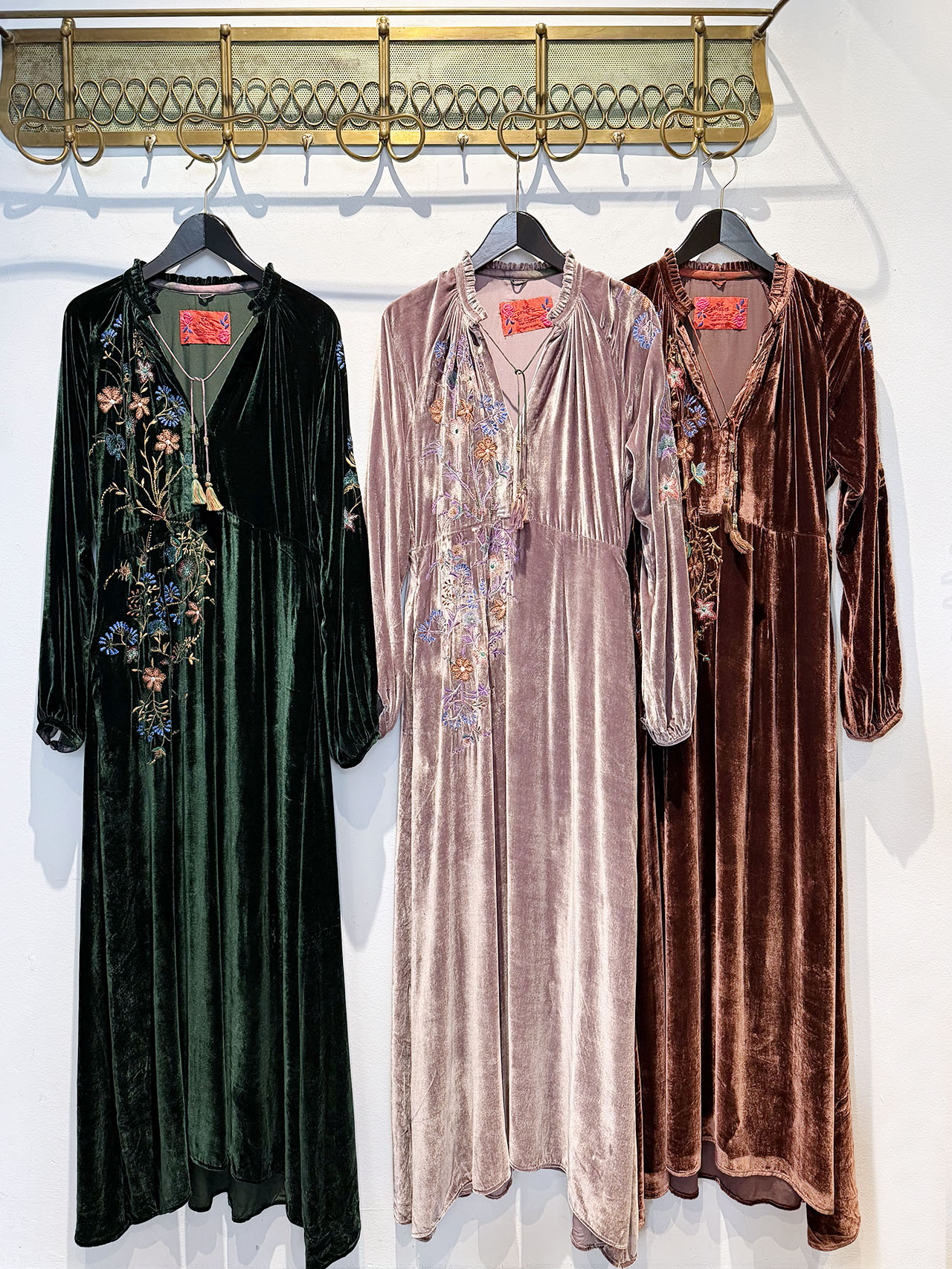 EMBROIDERED VELVET DRESS BY ORNAETE, AVAILABLE IN THREE COLOURS: 635€
