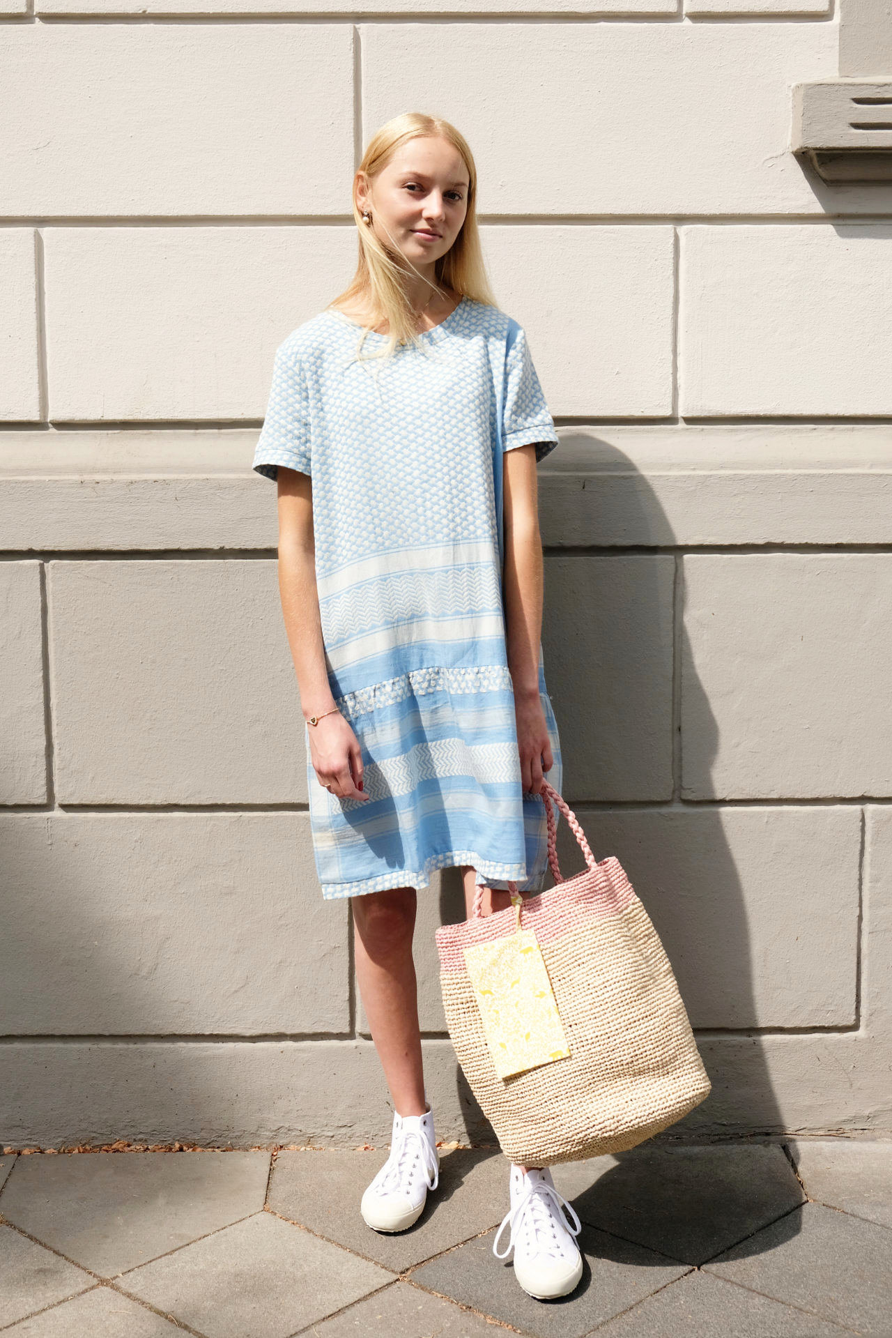 SHORT SLEEVE COTTON DRESS BY CECILIE COPENHAGEN, 100% HAND WOVEN COTTON, INSTEAD OF 179€ NOW: 125€