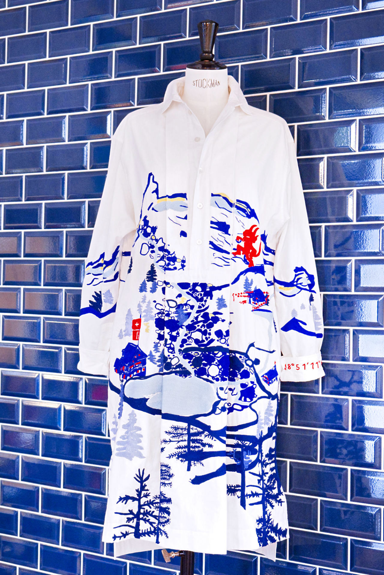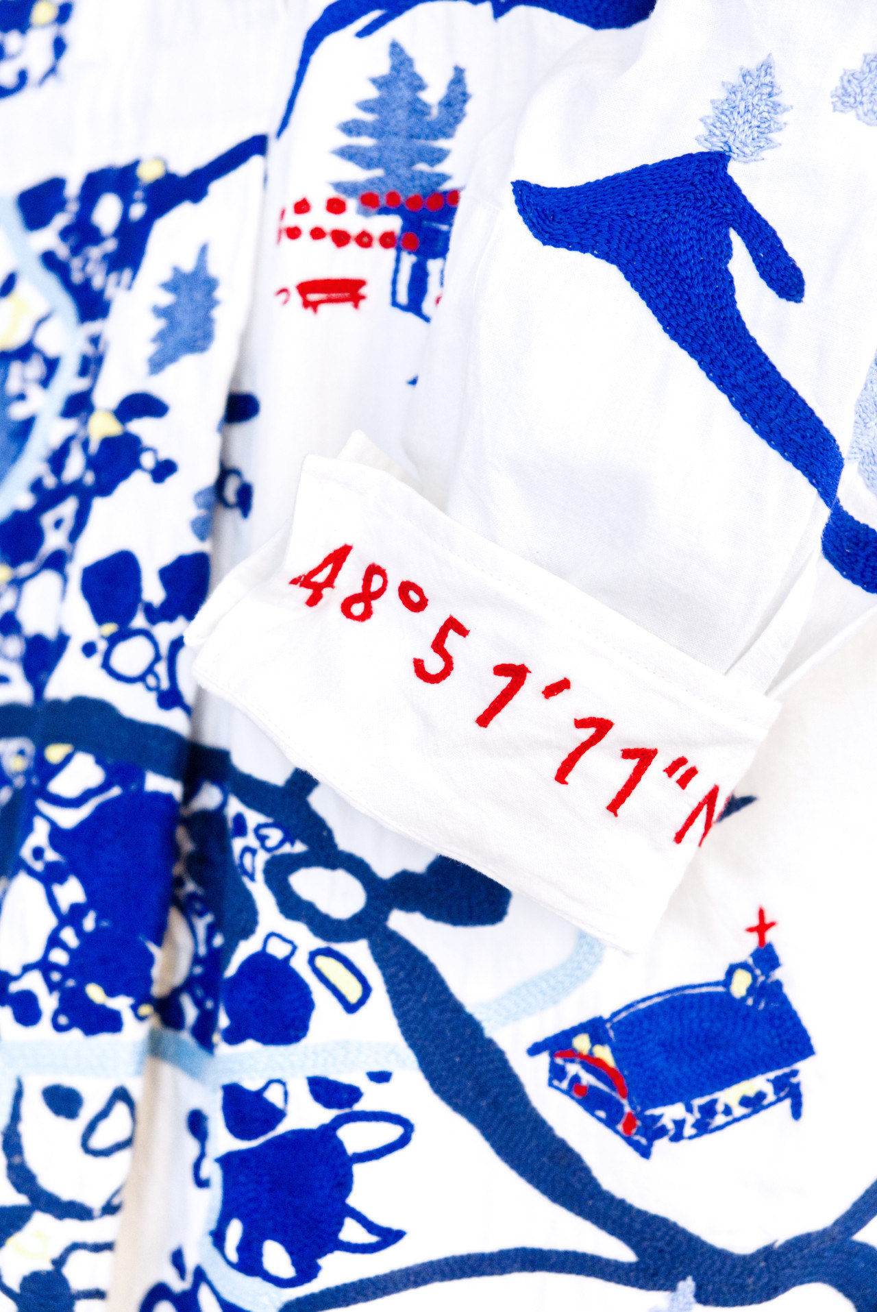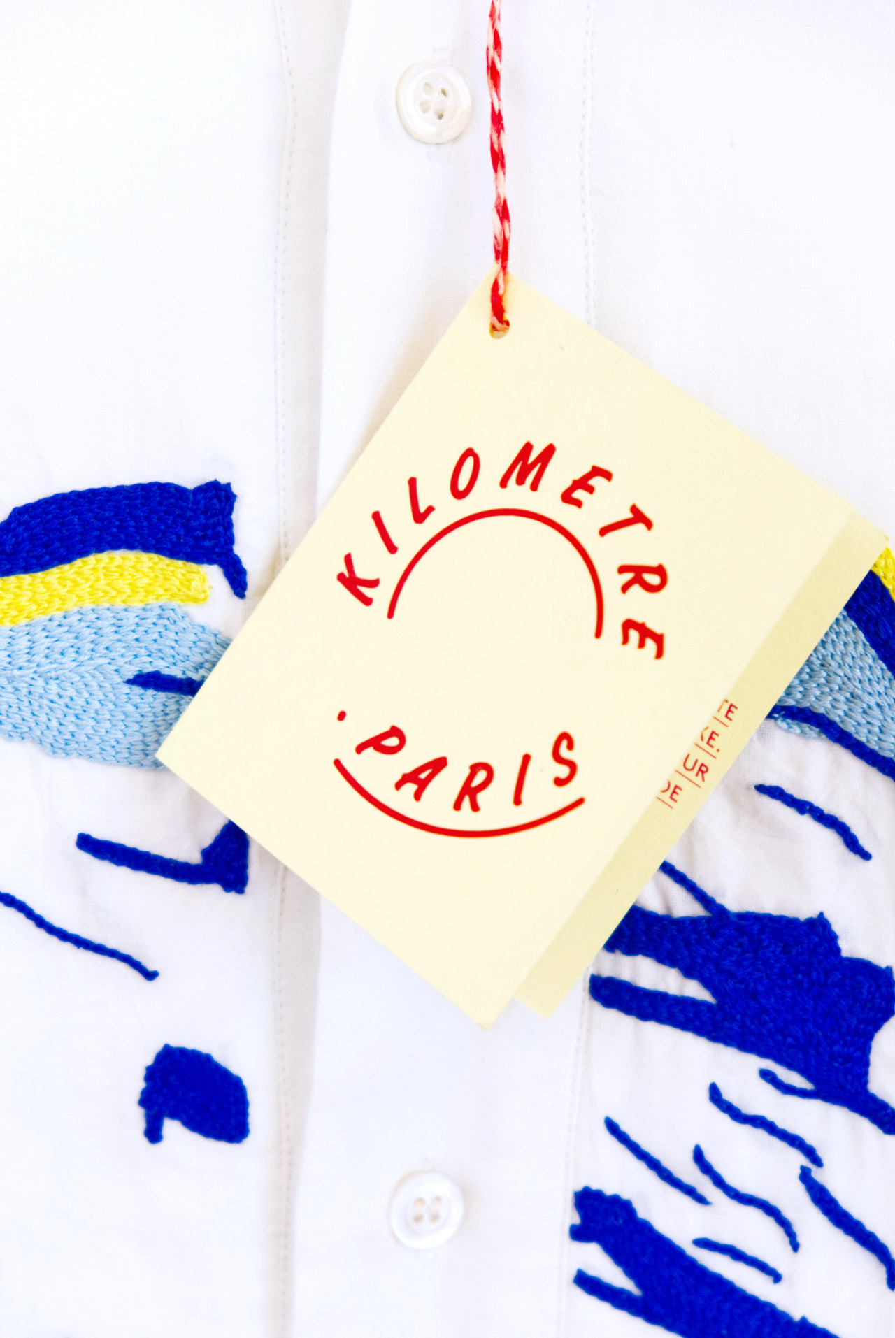 KILOMETRE PARIS USES VINTAGE SHIRTS AS IT CANVAS TO EXPRESS THE MERIDIANS AND PARALLELS OF TRAVEL. THIS SHIRT WILL TAKE YOU ON A JOURNEY FROM PARIS TO THE LAC DE DERBORENCE IN SWITZERLAND.
