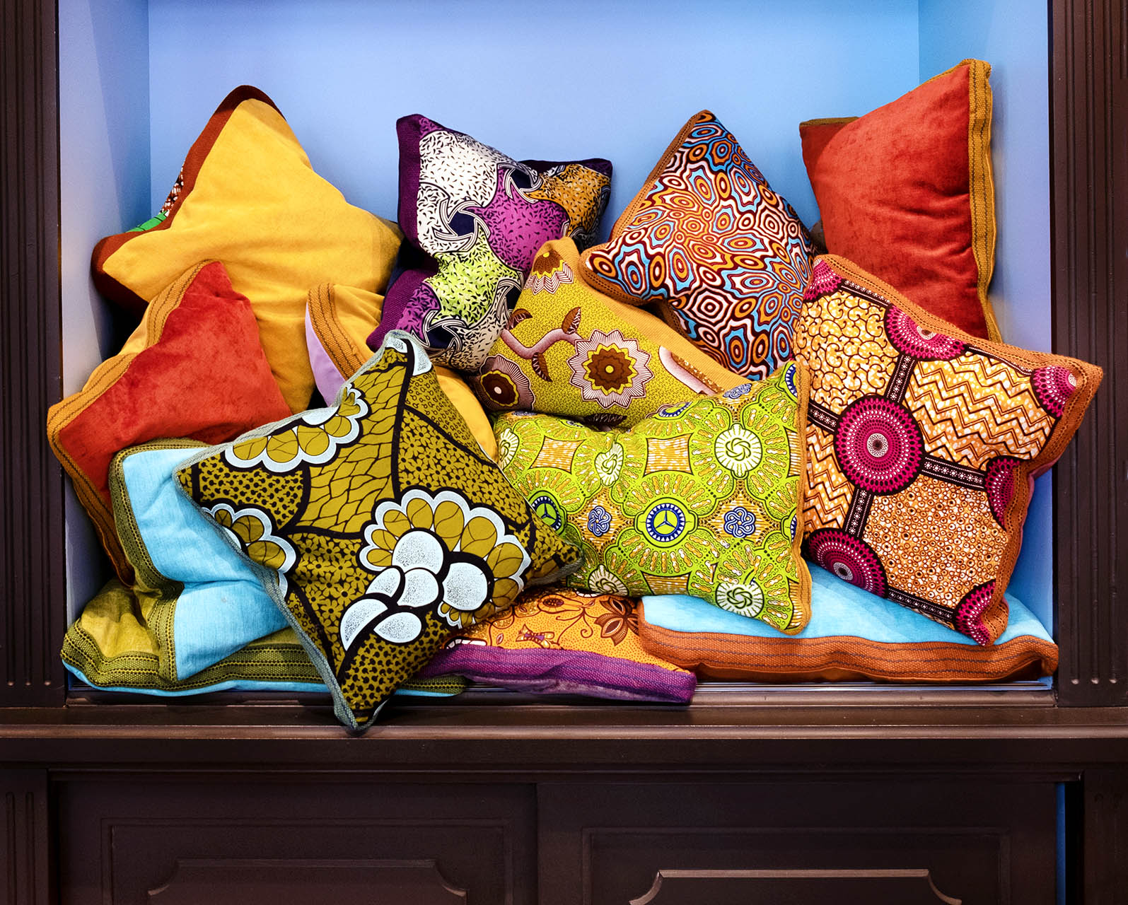 LATEST ARRIVAL OF HANDMADE CUSHIONS BY SIMPLES, MADE OF VINTAGE AND UNIQUE FABRICS, AVAILABLE IN S, M, L: 135€, 165€, 195€