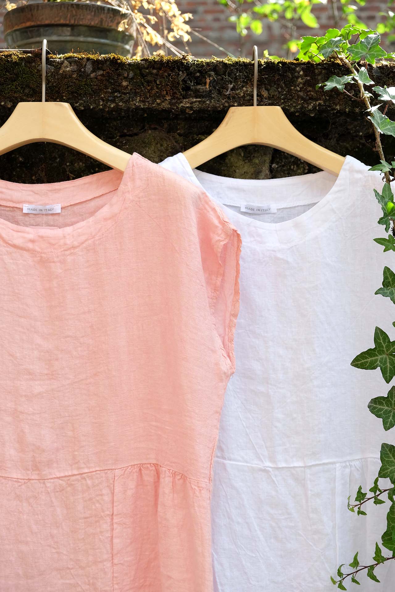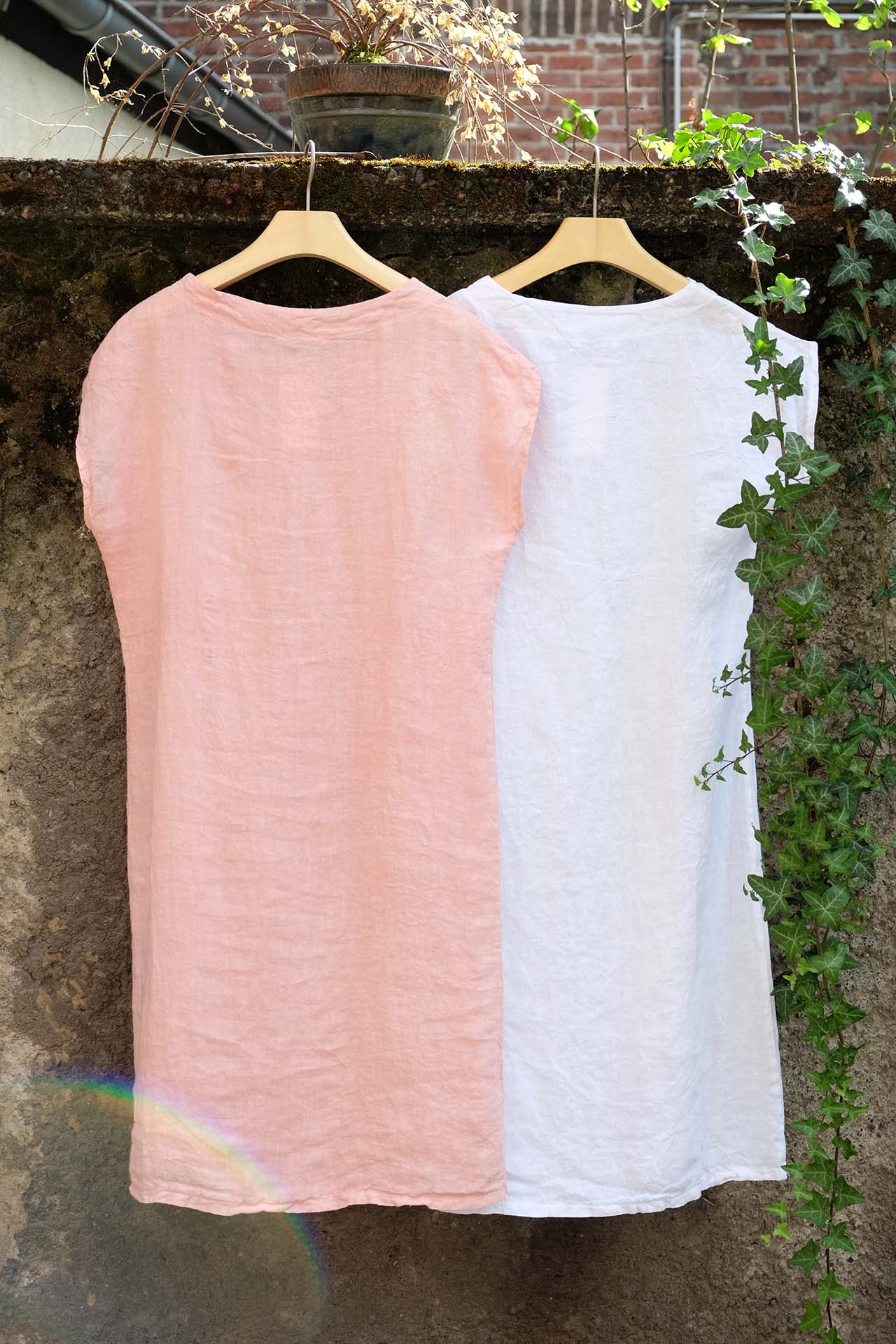 LUFTIGES LEINENKLEID IN DEN FARBEN PALE ROSE UND WEISS: 39€