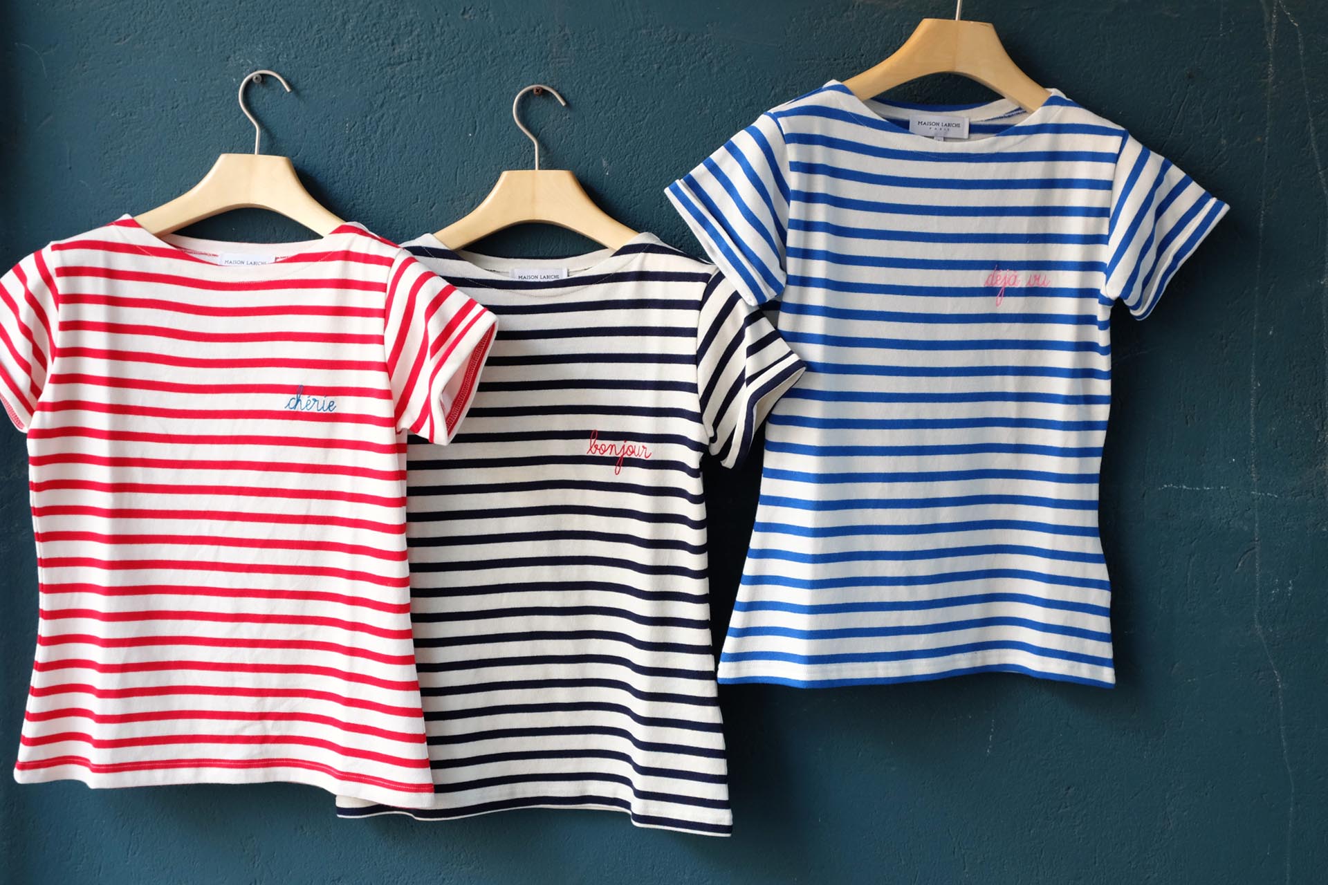 DIE SHIRTS VON MAISON LABICHE GIBT ES MIT: DEJA VU, BONJOUR, CHERIE, TINY CRAB UND BLONDIE.