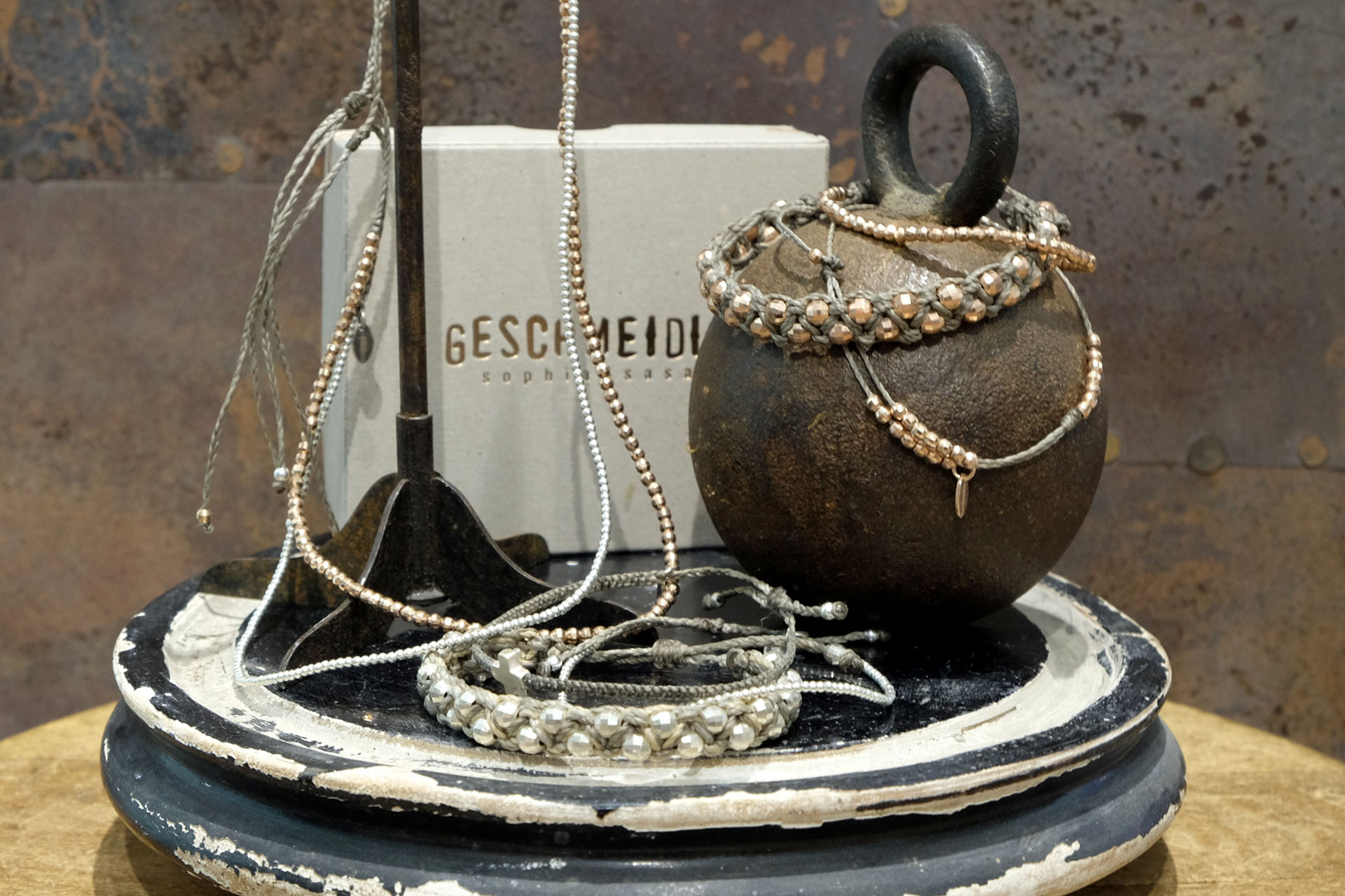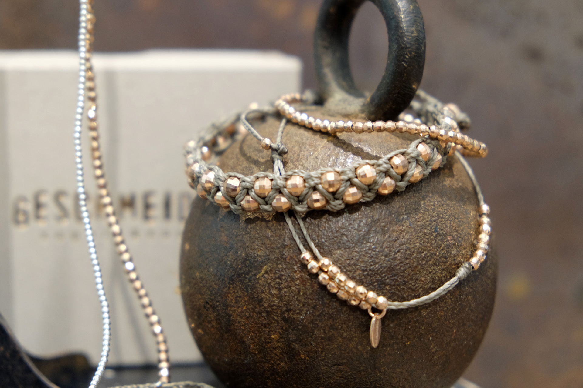EDLES METALL UND ROBUSTE SCHNÜRE IN ALLEN ERDENKLICHEN FARBEN VEREINEN SICH ZU DEN SCHMUCKSTÜCKEN VON GESCHMEIDIG. DIESE KOMMEN EDEL UND "ROUGH" ZUGLEICH DAHER - EIN STILBRUCH, DER DEN SCHMUCK VON ANDEREN ABHEBT, EINZIGARTIG UND BESONDERS MACHT.