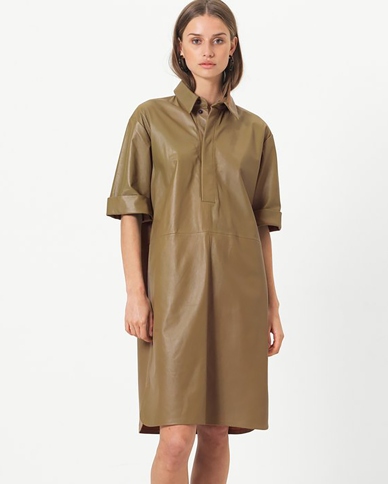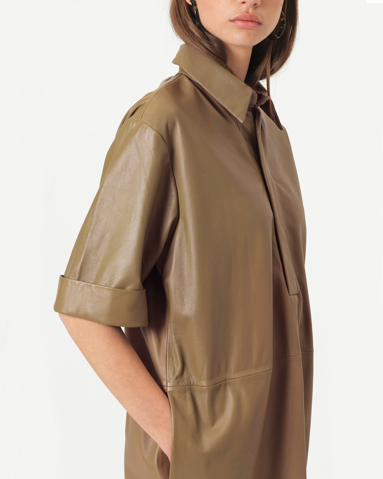 LEATHER MIDI DRESS WITH CLASSIC COLLAR BY SECOND FEMALE, 100% LAMB LEATHER: 315€