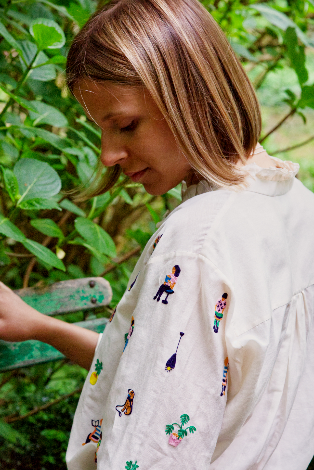 BLOUSE WITH HAND EMBROIDERIES BY LAÏTE WORKS, COTTON SILK MIX: 345€