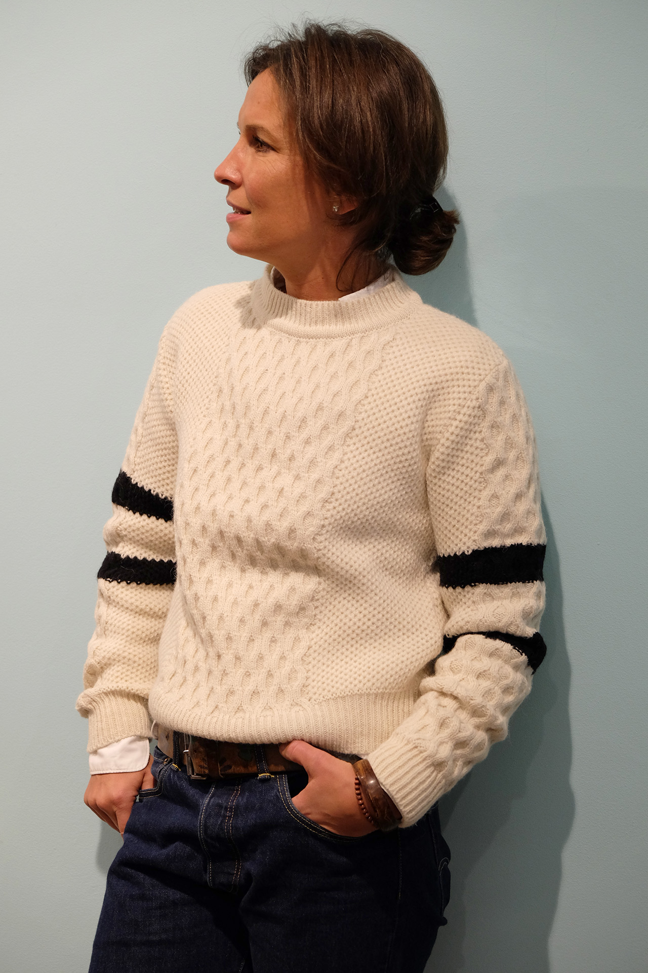 IN DIESEM STRICKPULLOVER VON LE MONT ST MICHEL VEREINEN SICH UNTERSCHIEDLICHSTE STRICKTECHNIKEN ZU EINEM TOLLEN PULLOVER.
