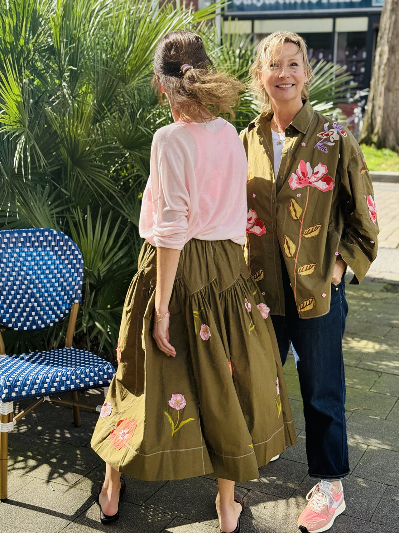 EMBROIDERED SHIRT & SKIRT MADE EXCLUSIVELY BY HAND BY LAÏTE, 100% COTTON: 599€ & 855€